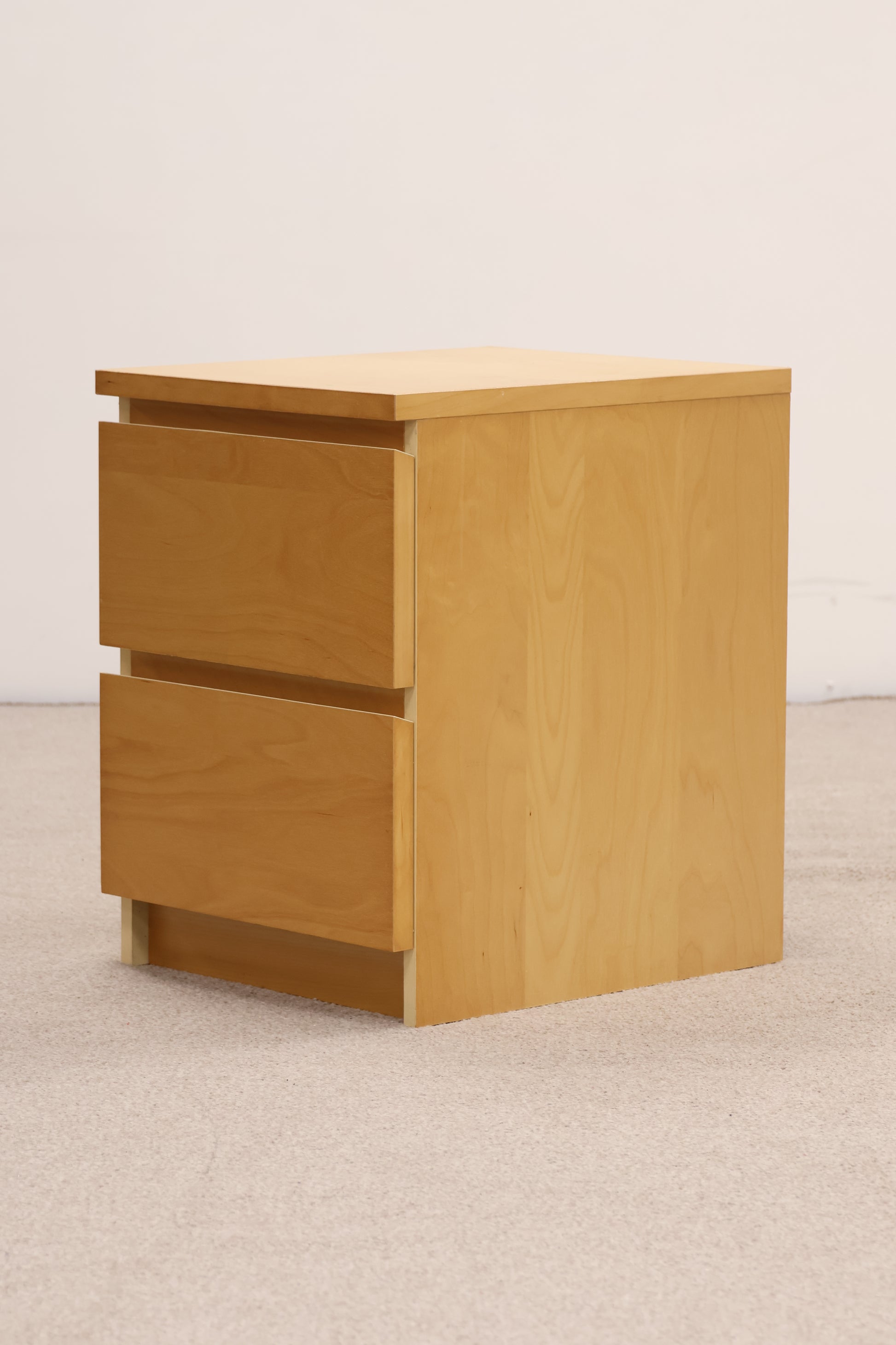 Sleek and functional, this modern bedside table features two spacious drawers for storing essentials within arm's reach. Clean lines and a contemporary design complement any bedroom aesthetic.