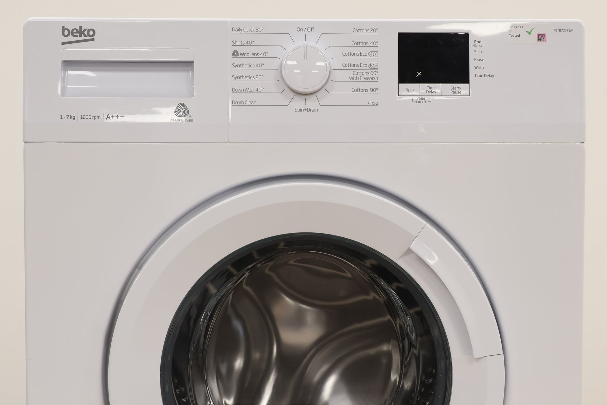 Beko washing machine with a 7kg capacity and 1200 rpm spin speed, designed for efficient everyday washing. The A+++ energy rating means lower running costs and reduced environmental impact without compromising on cleaning performance.