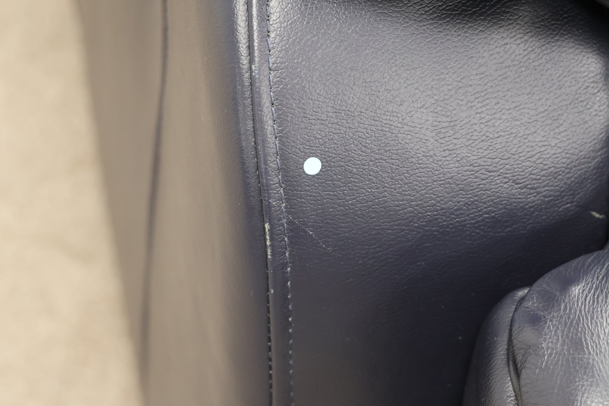 This armchair is upholstered in genuine dark navy leather and features a manual recliner for easy, personalised comfort. Its sturdy construction provides reliable support, making it a practical addition to any living area. With a classic design and straightforward functionality, this chair combines style and comfort.