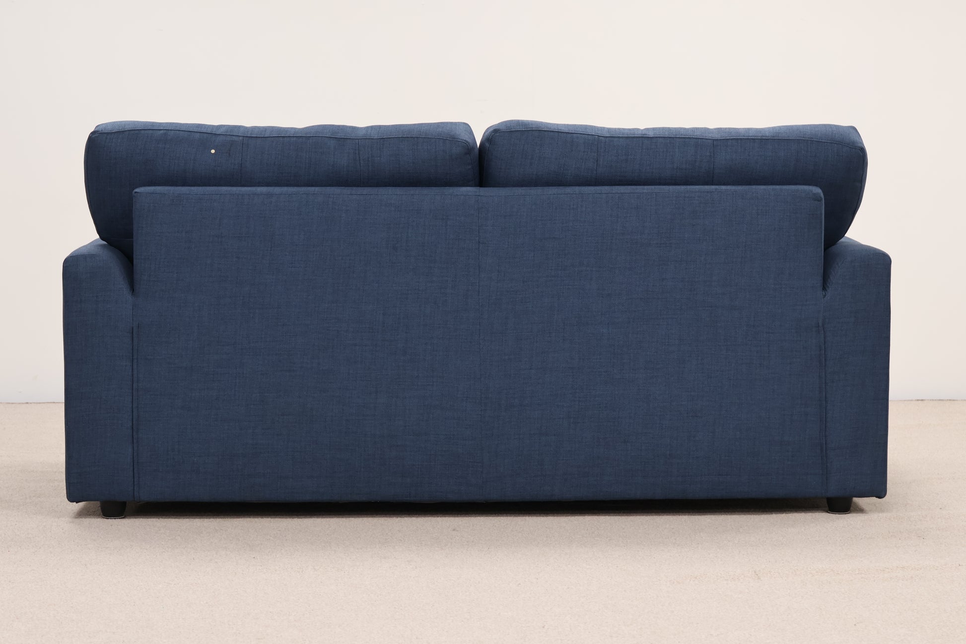 A contemporary two seater sofa in striking blue, designed for modern living spaces. This compact yet comfortable piece offers clean lines that complement minimalist and mid-century interiors alike.