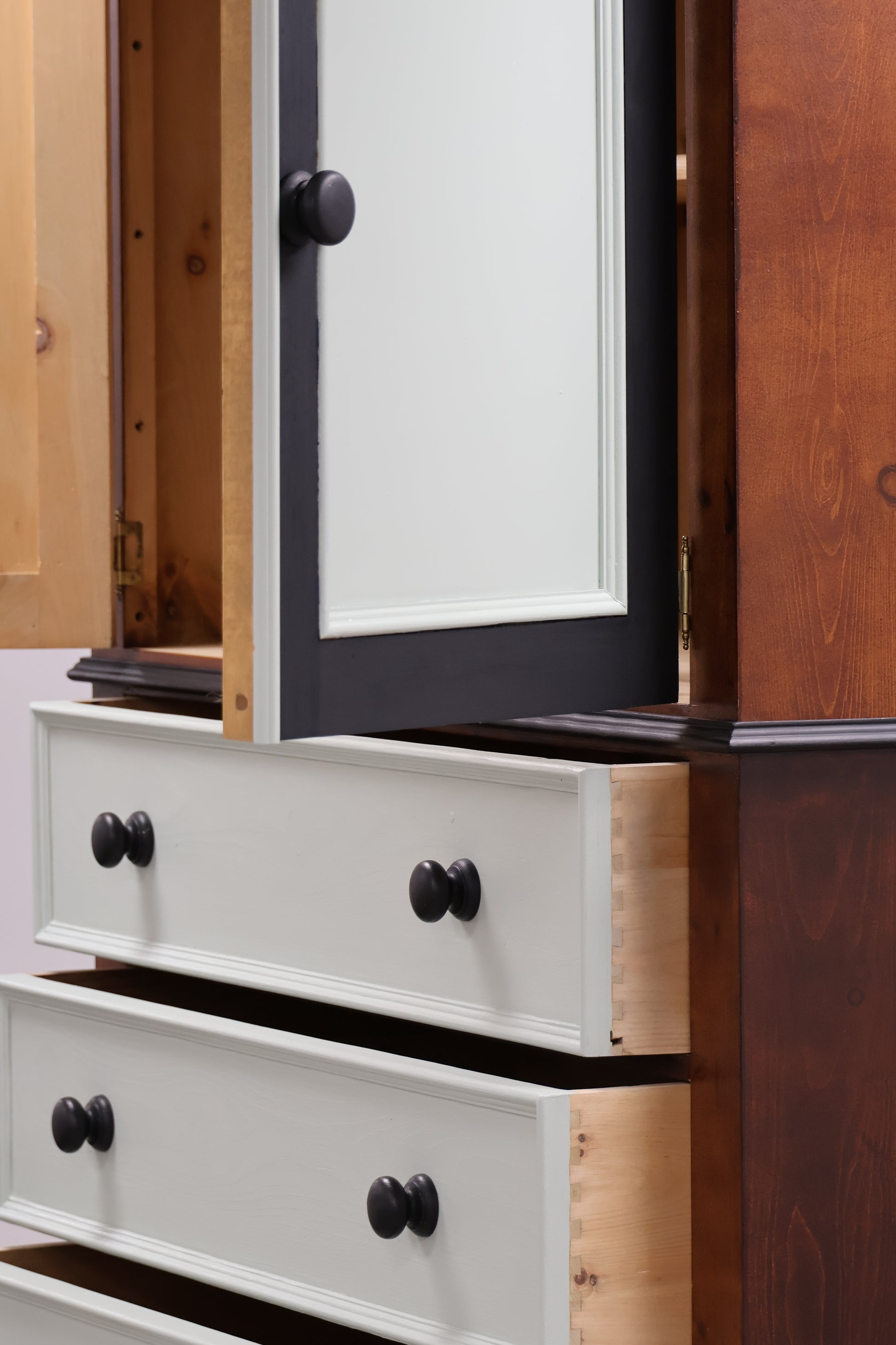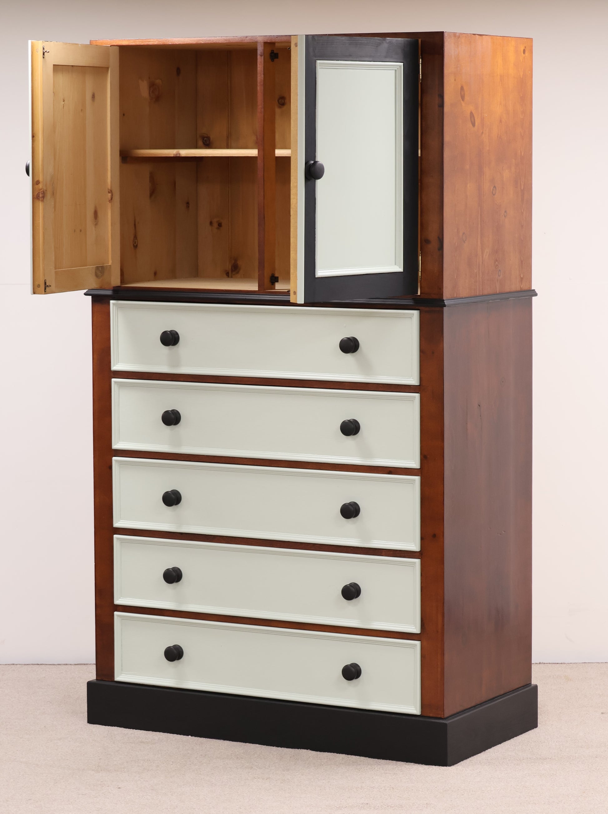 Bedroom Storage Unit This two-piece storage solution has a unique story. Donated to us incomplete, our UPCYCLEinc team finished the project and infused it with their own creative design and character.