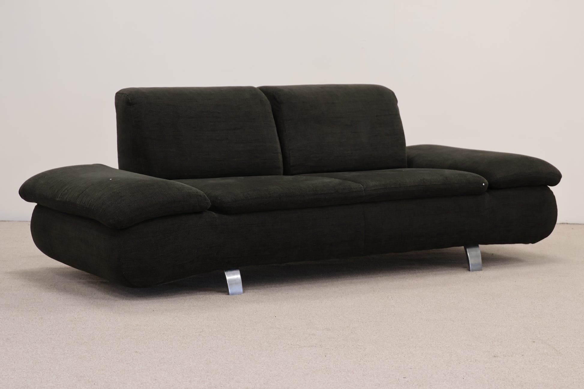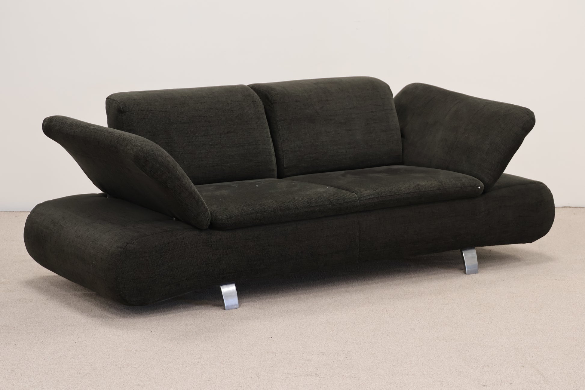 This dark grey sofa combines modern style with practical comfort. Its adjustable armrests allow you to customize your seating experience, while the sleek chrome feet add a contemporary touch. Ideal for any living space, this sofa balances design and functionality with understated elegance.
