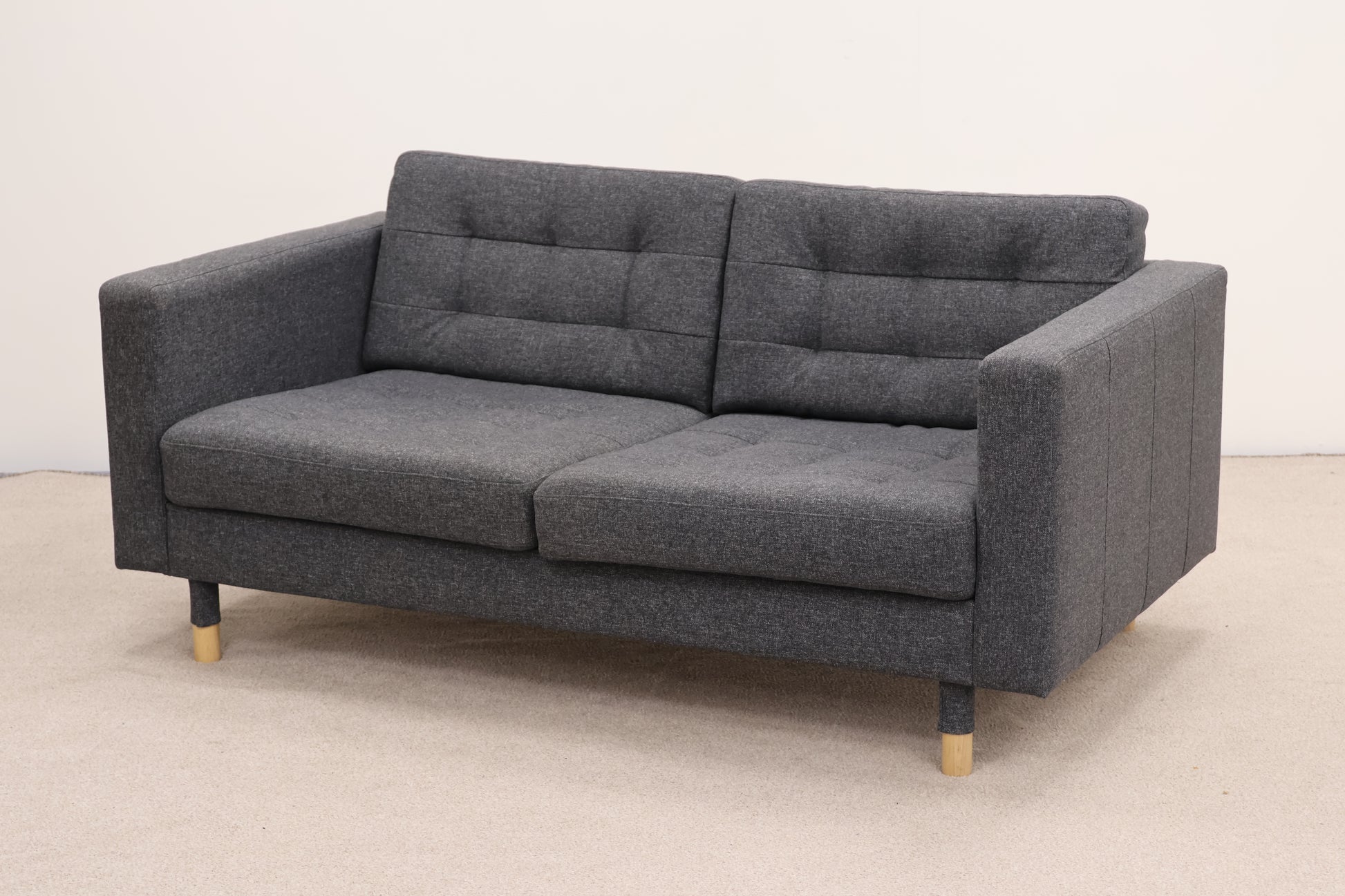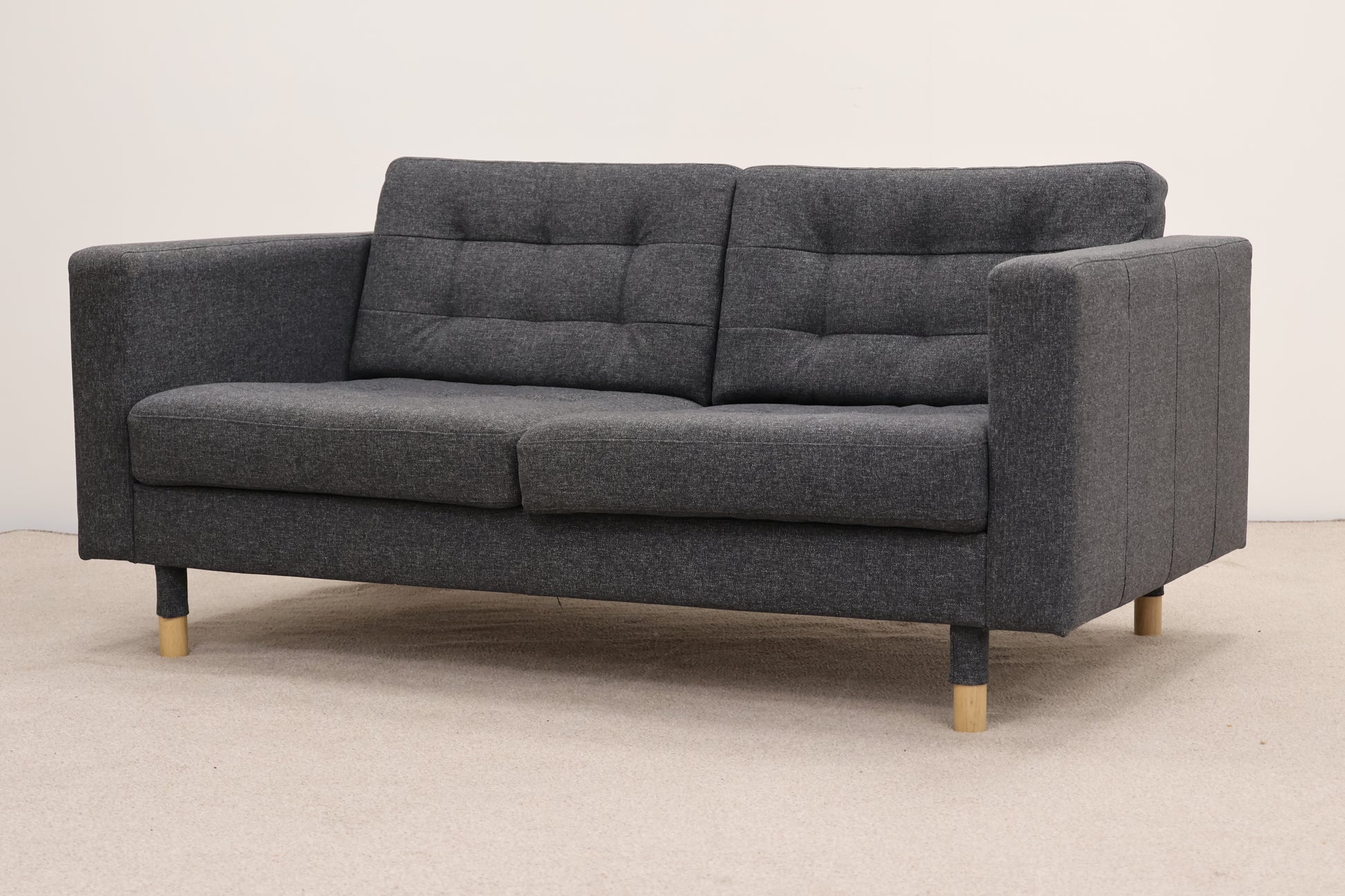 This dark grey two-seater sofa from Ikea offers a modern, understated design that fits well in a variety of living spaces. Its compact size makes it ideal for smaller rooms or apartments, while the neutral grey fabric provides a versatile backdrop for your décor.