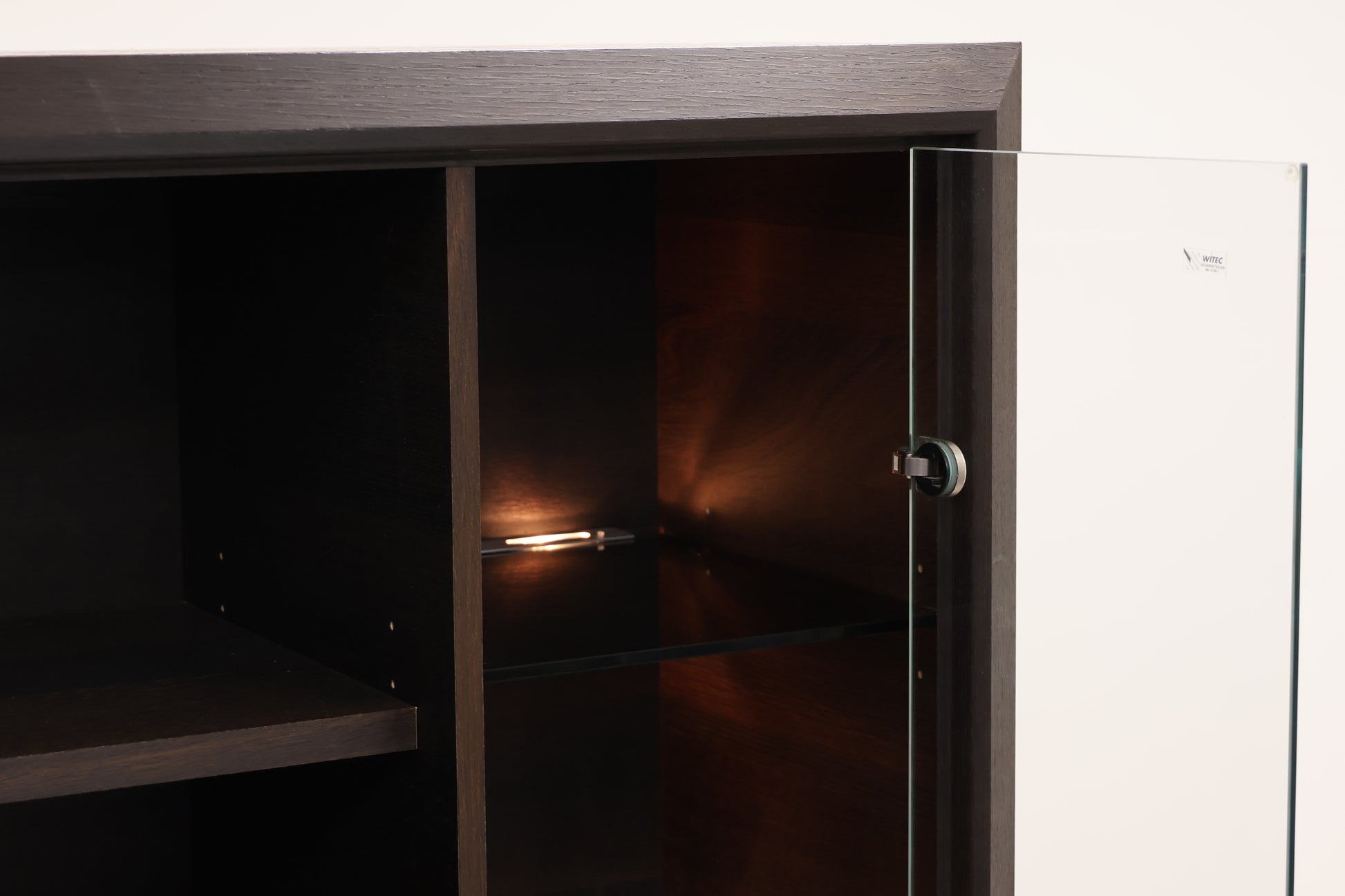 This elegant display cabinet combines refined design with integrated lighting to showcase your treasured collections in sophisticated style. The internal illumination creates a subtle, understated ambiance that highlights your display without overwhelming the space.