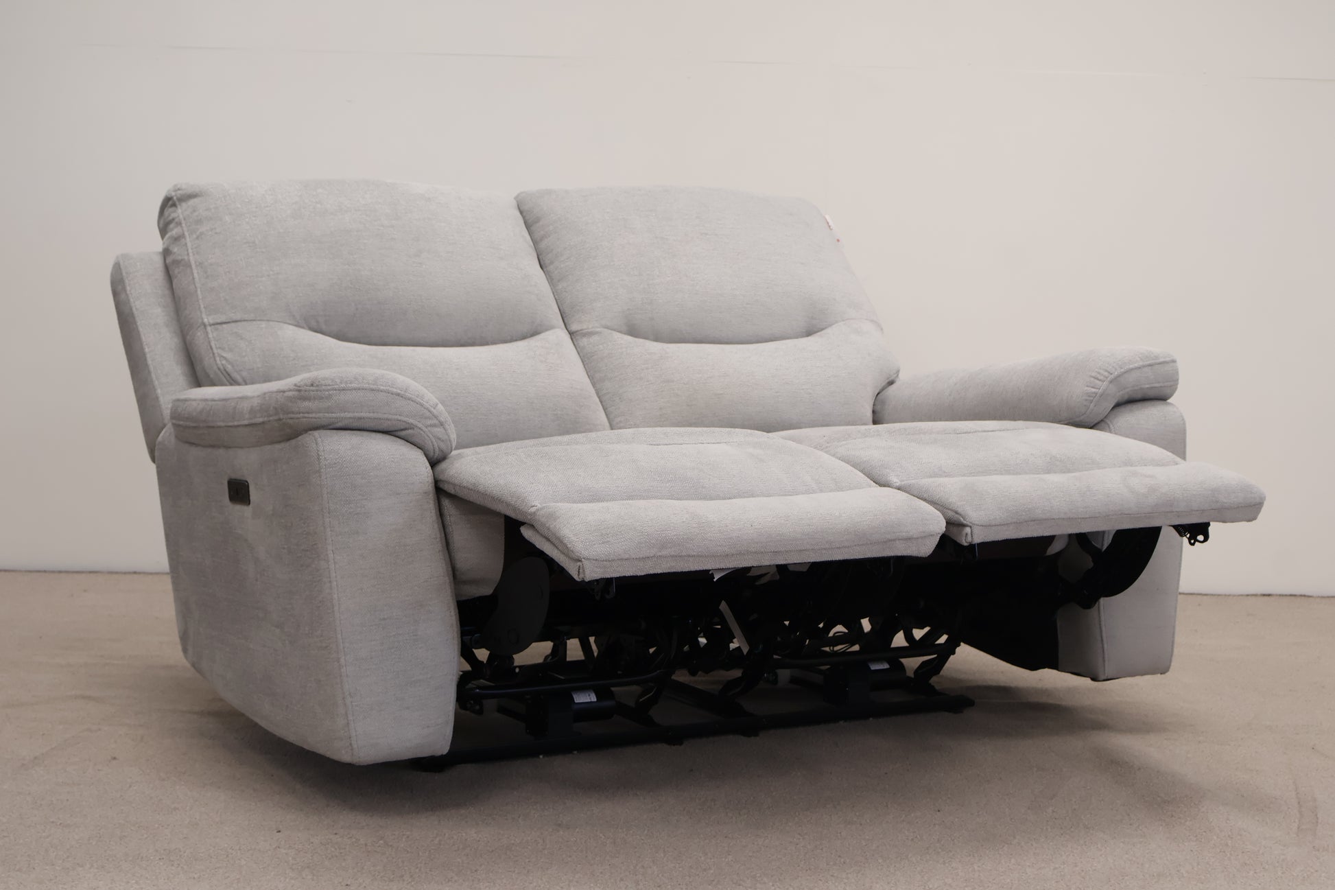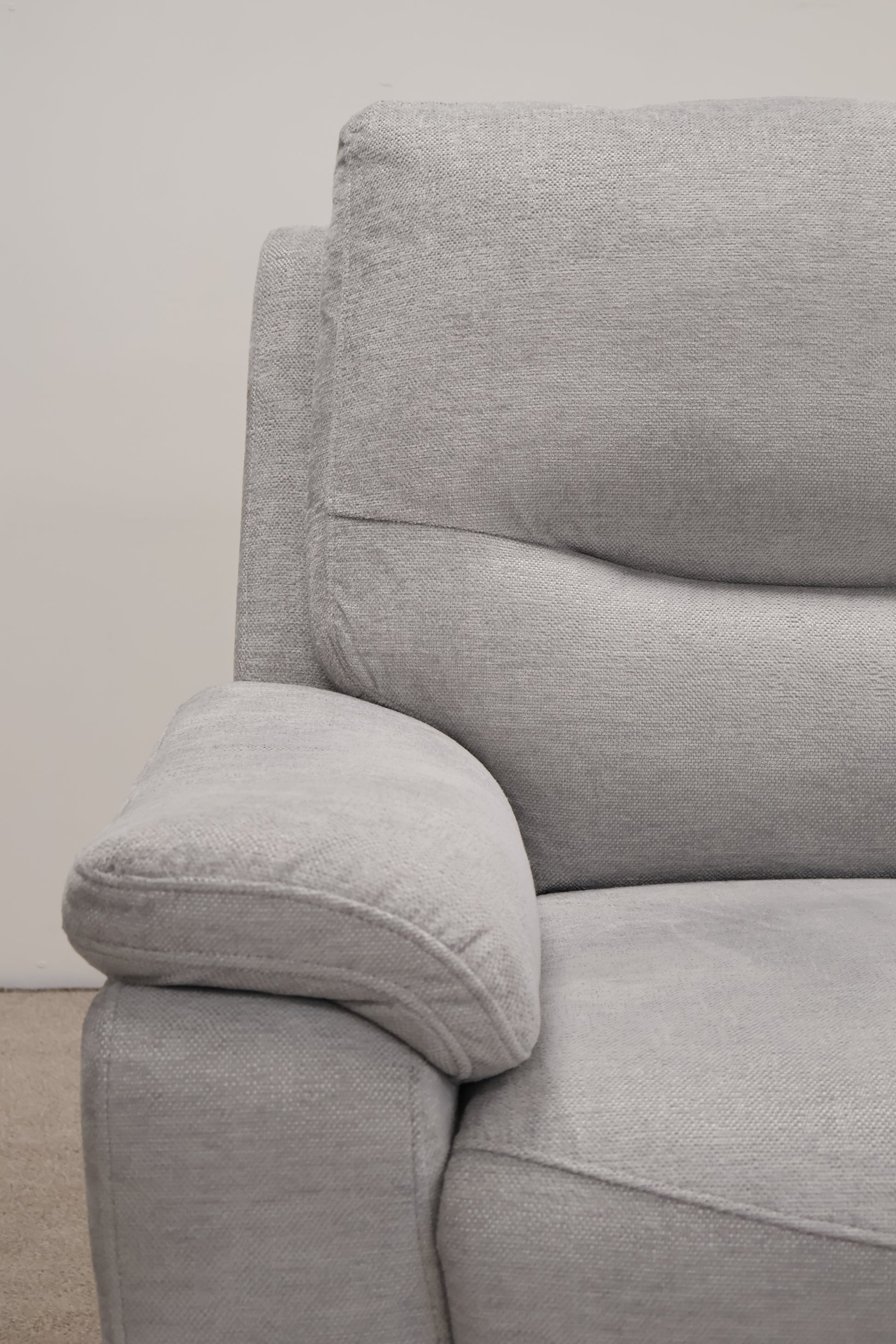 This light grey electric recliner combines comfort with convenience, featuring built-in USB ports that allow you to charge your devices while you relax. Its sleek design fits seamlessly into any living space, offering smooth reclining adjustment for personalised comfort. Ideal for unwinding after a long day, it provides practical functionality alongside cosy seating.