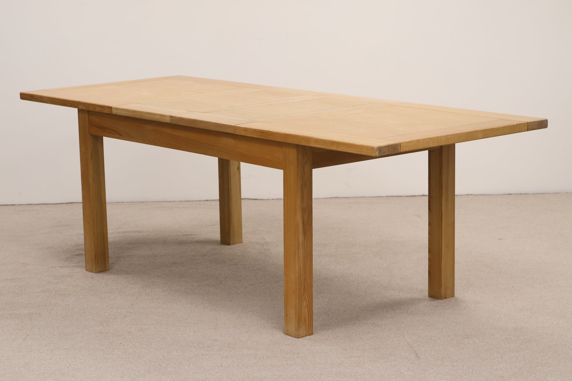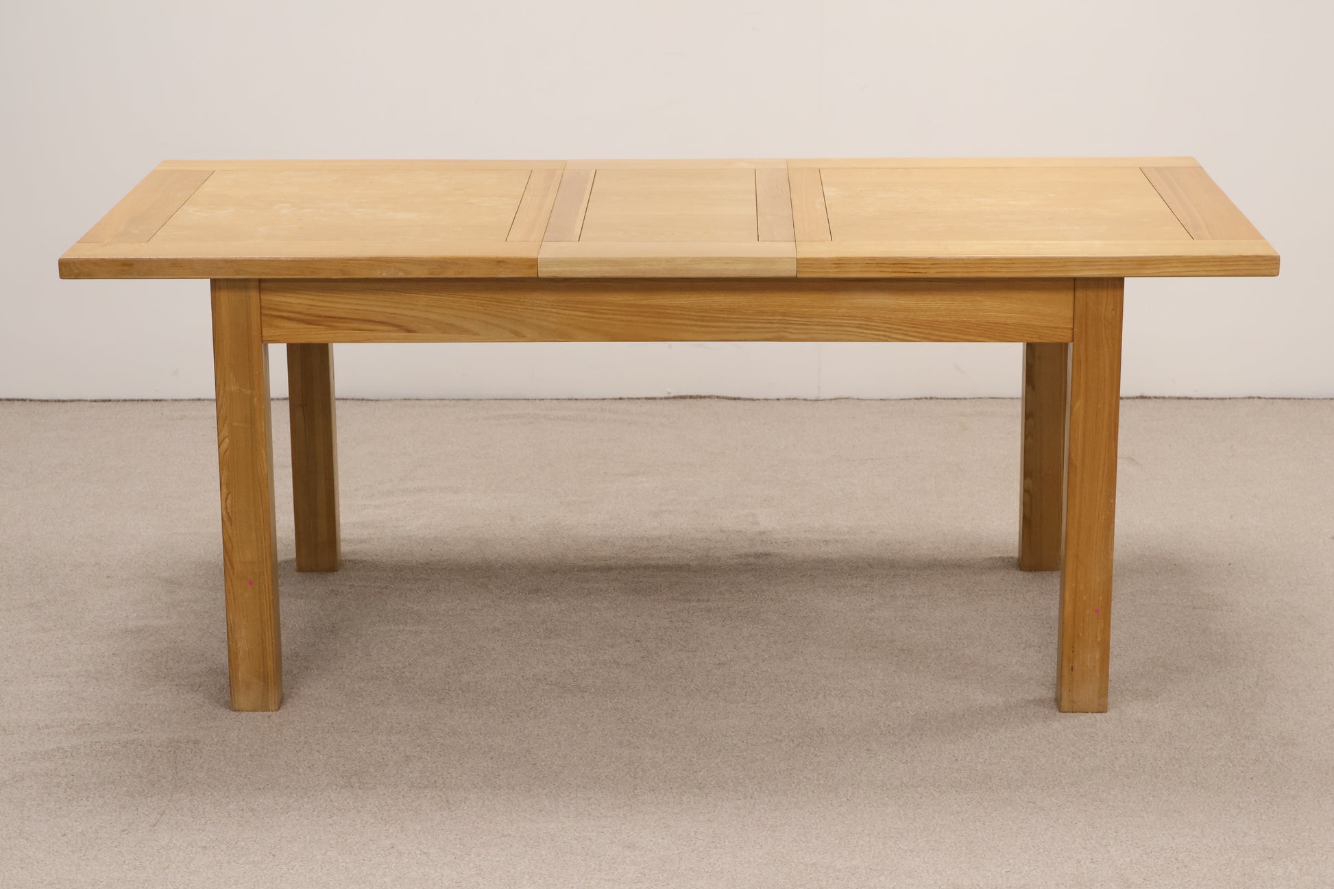 This beautiful extendable oak table features cleverly concealed leaves stored beneath the surface, allowing you to expand it to two different lengths when needed.