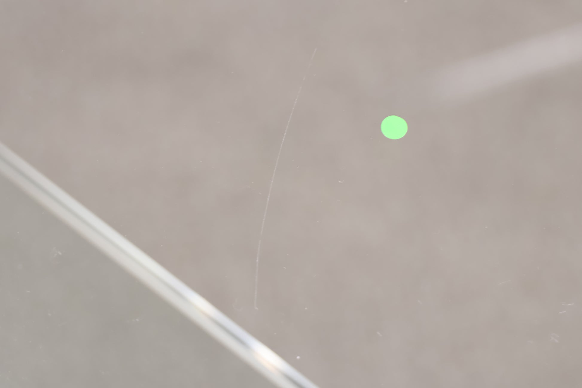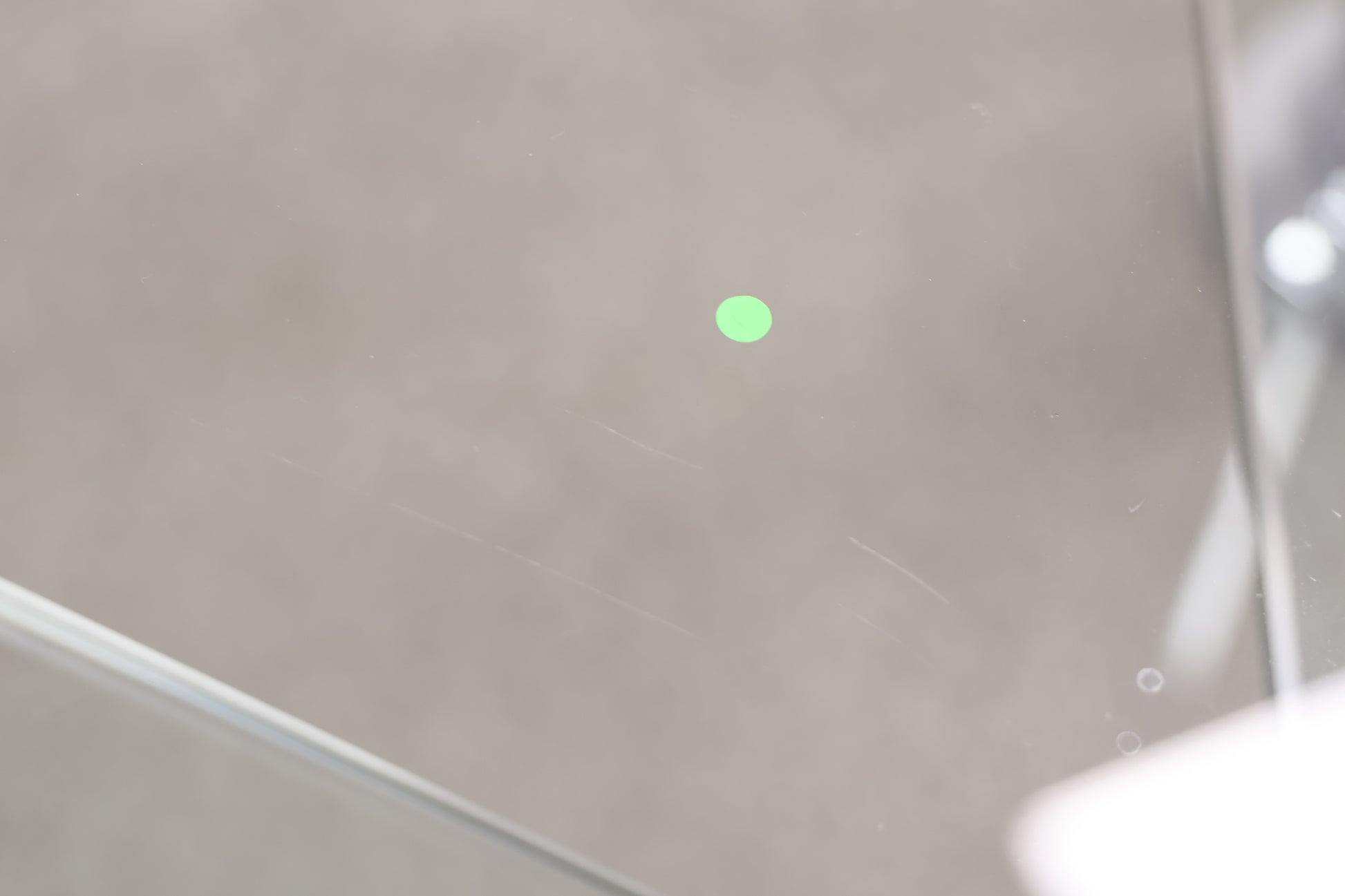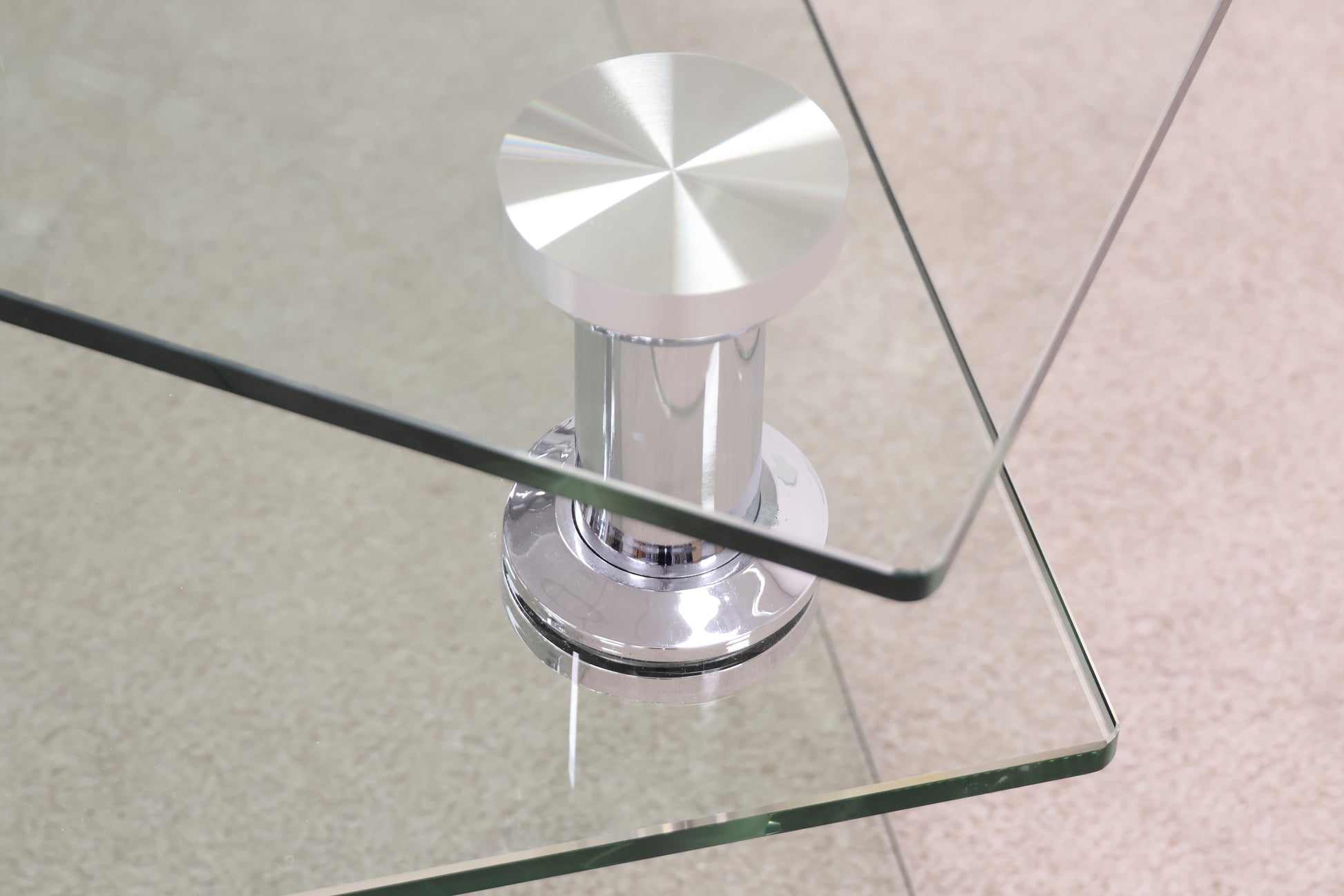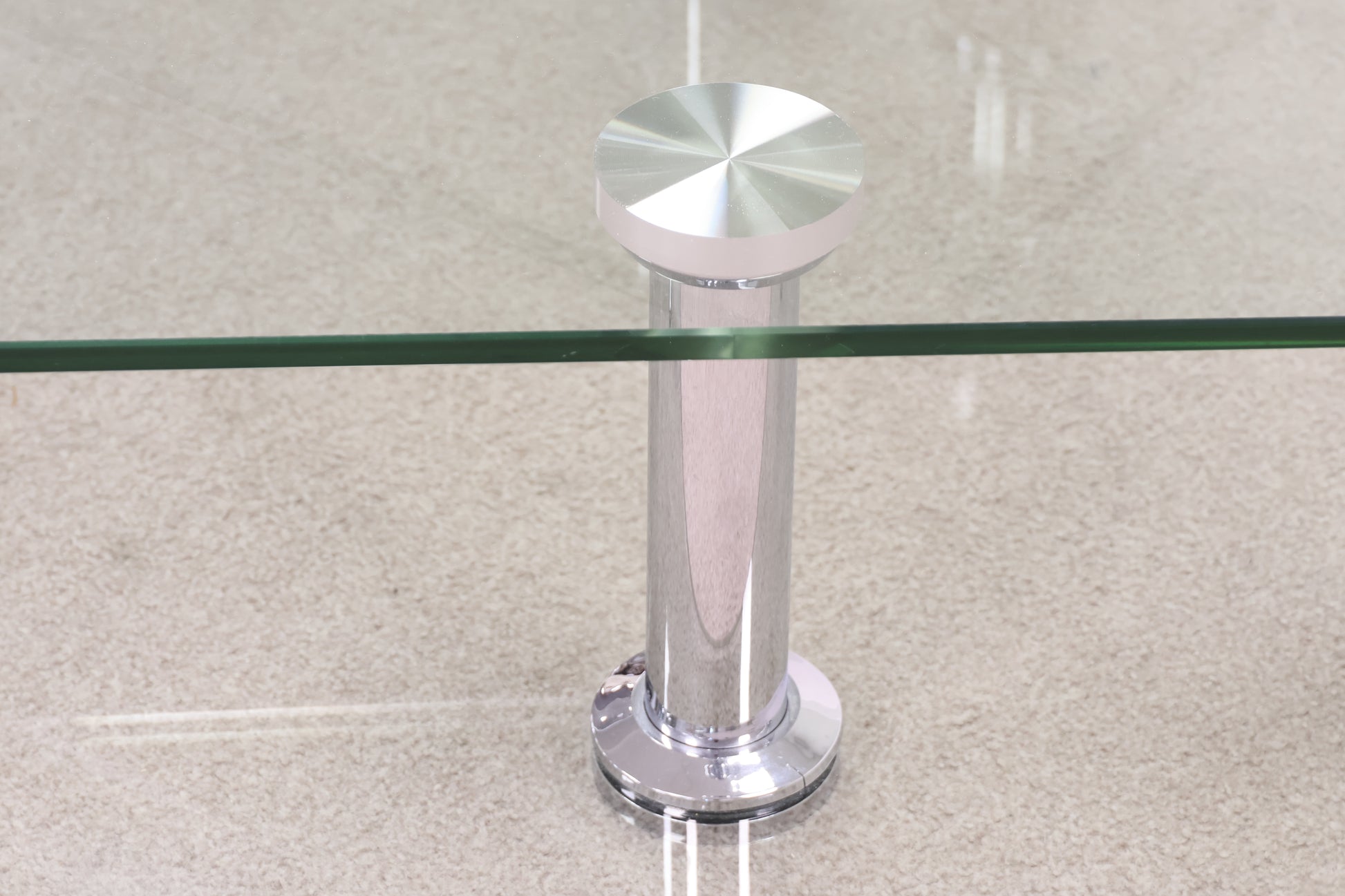 This glass coffee table extends up to 120cm with movable parts, providing adaptable space for your needs. It shows minor scratch marks as pictured but no other visible wear or tear.