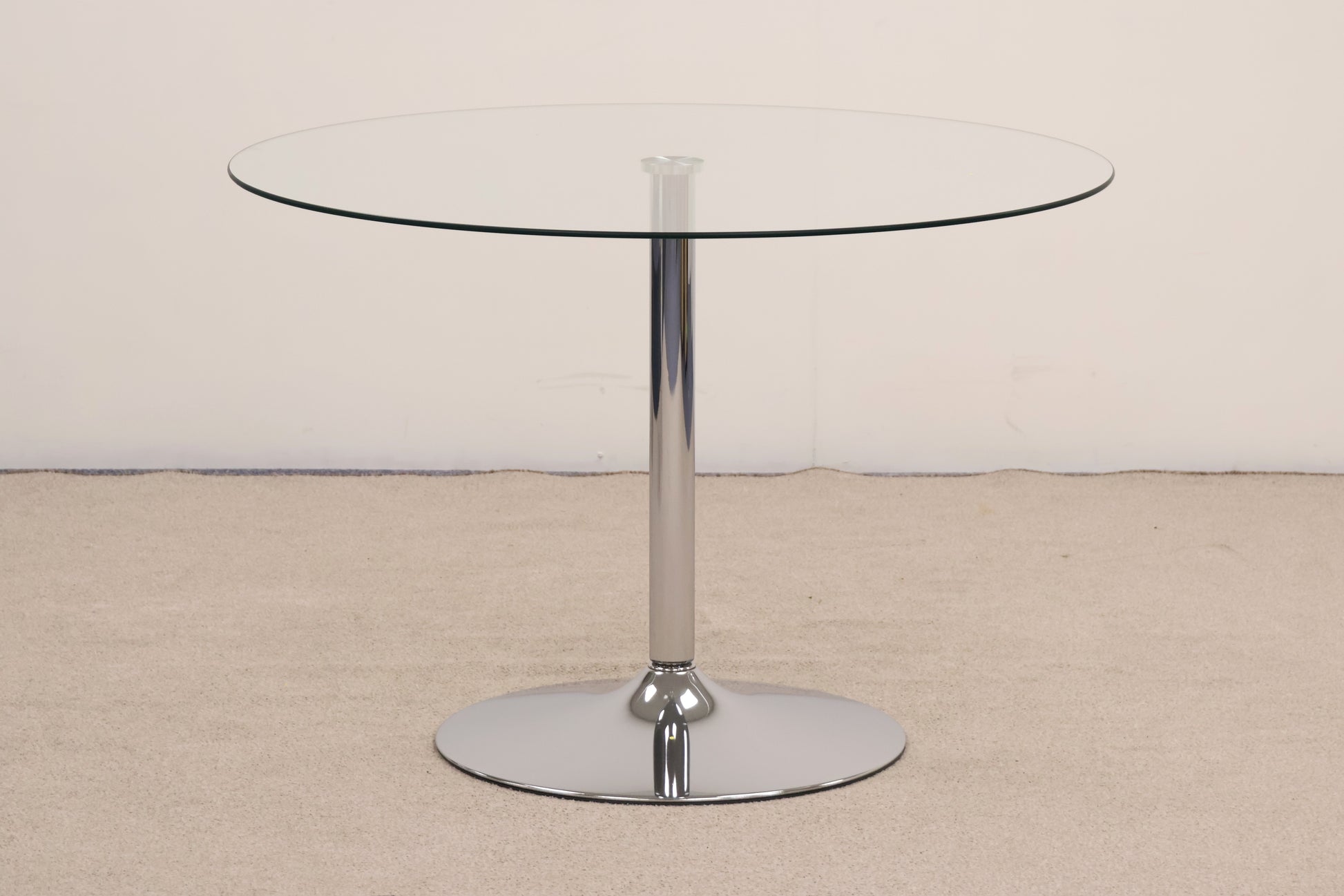 Perfect for compact kitchens and intimate dining spaces, this circular glass dining table brings both functionality and light-filled elegance to your home. The glass surface creates an airy feel while maximising visual space, making it ideal for smaller rooms.