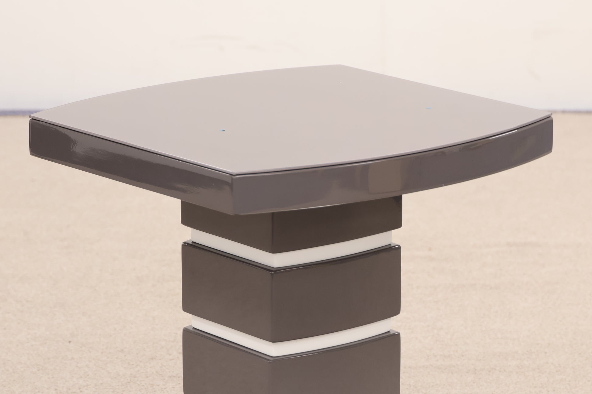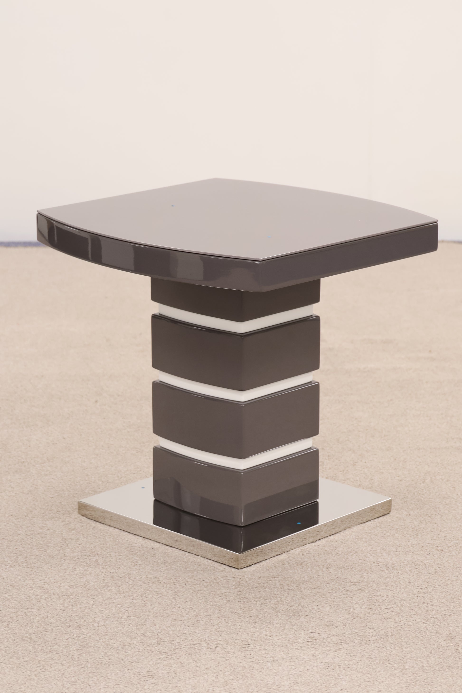 This sleek grey side table brings contemporary style to any living space. With its minimalist design and clean lines, it embodies modern aesthetics while maintaining practical functionality.