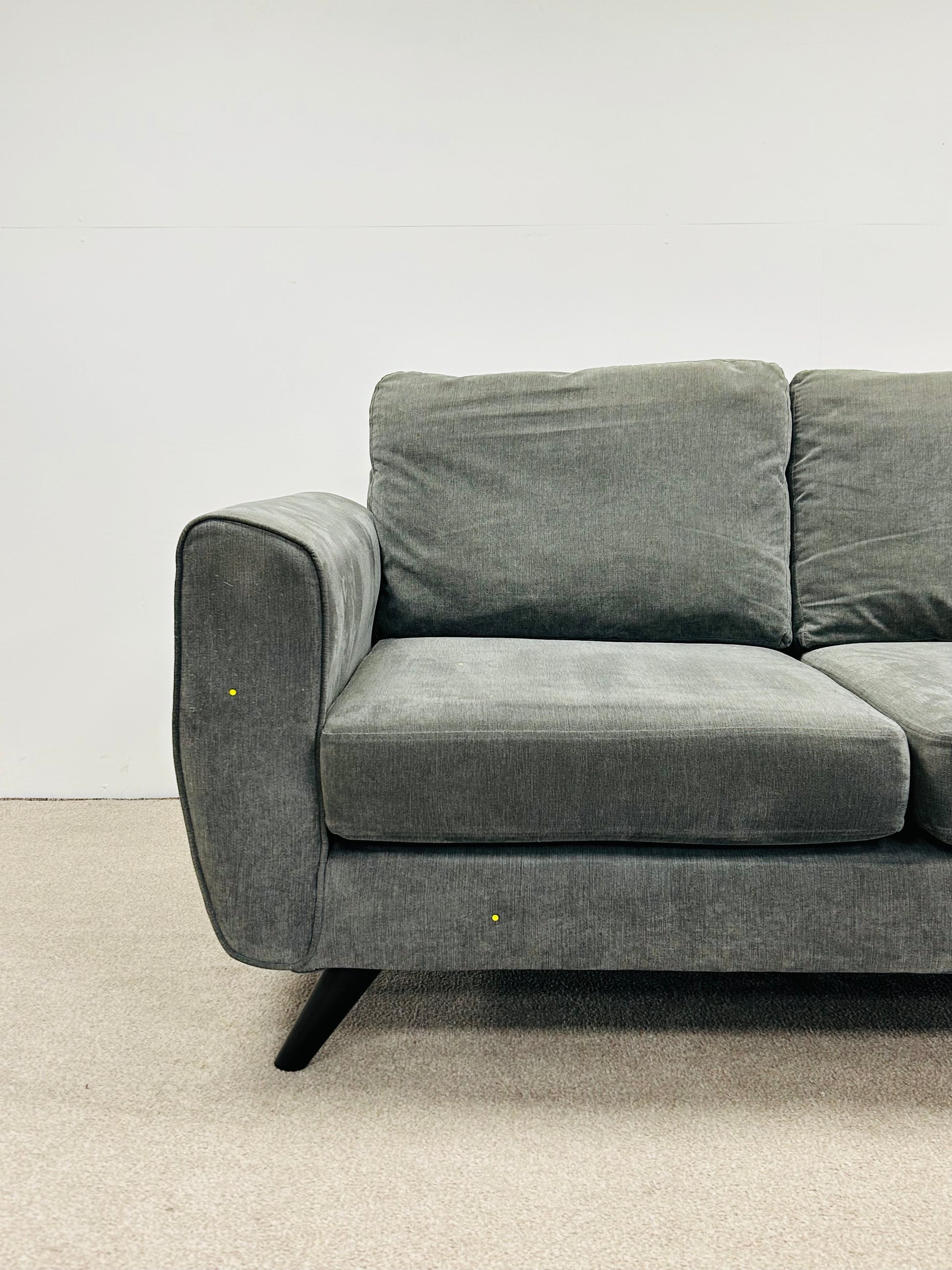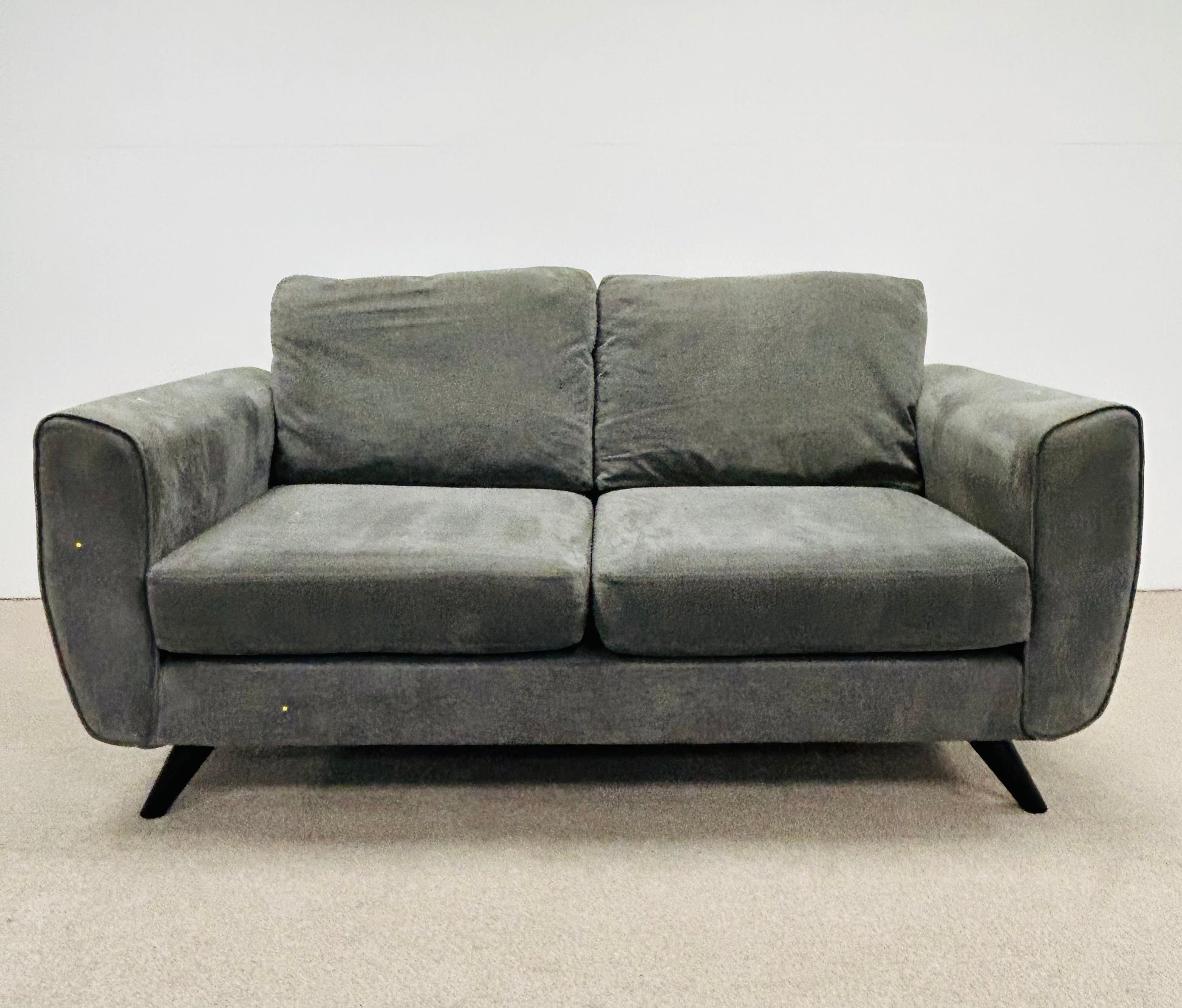 A practical two-seat fabric sofa in grey, offering comfortable seating in good preloved condition. Ideal for student accommodation, rental properties, or anyone seeking affordable furnishings without compromise. This versatile piece fits easily into compact spaces whilst providing reliable everyday comfort. Perfect for landlords looking to furnish properties cost-effectively or students furnishing their first home.