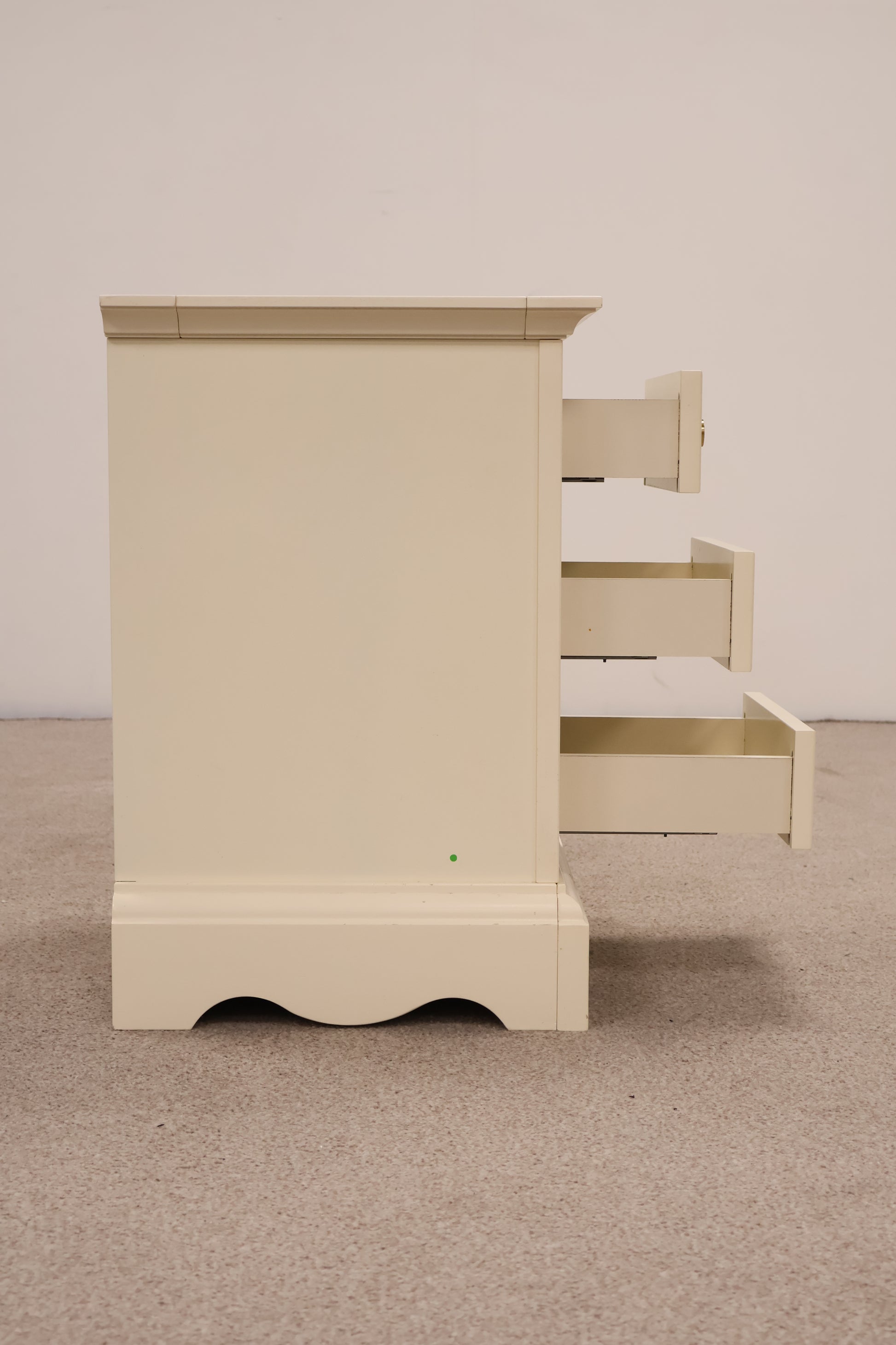 This Ivory Bedside Unit from John Lewis combines style and practicality with its three drawers and elegant gold-coloured handles. Its understated design brings a chic touch to any bedroom.