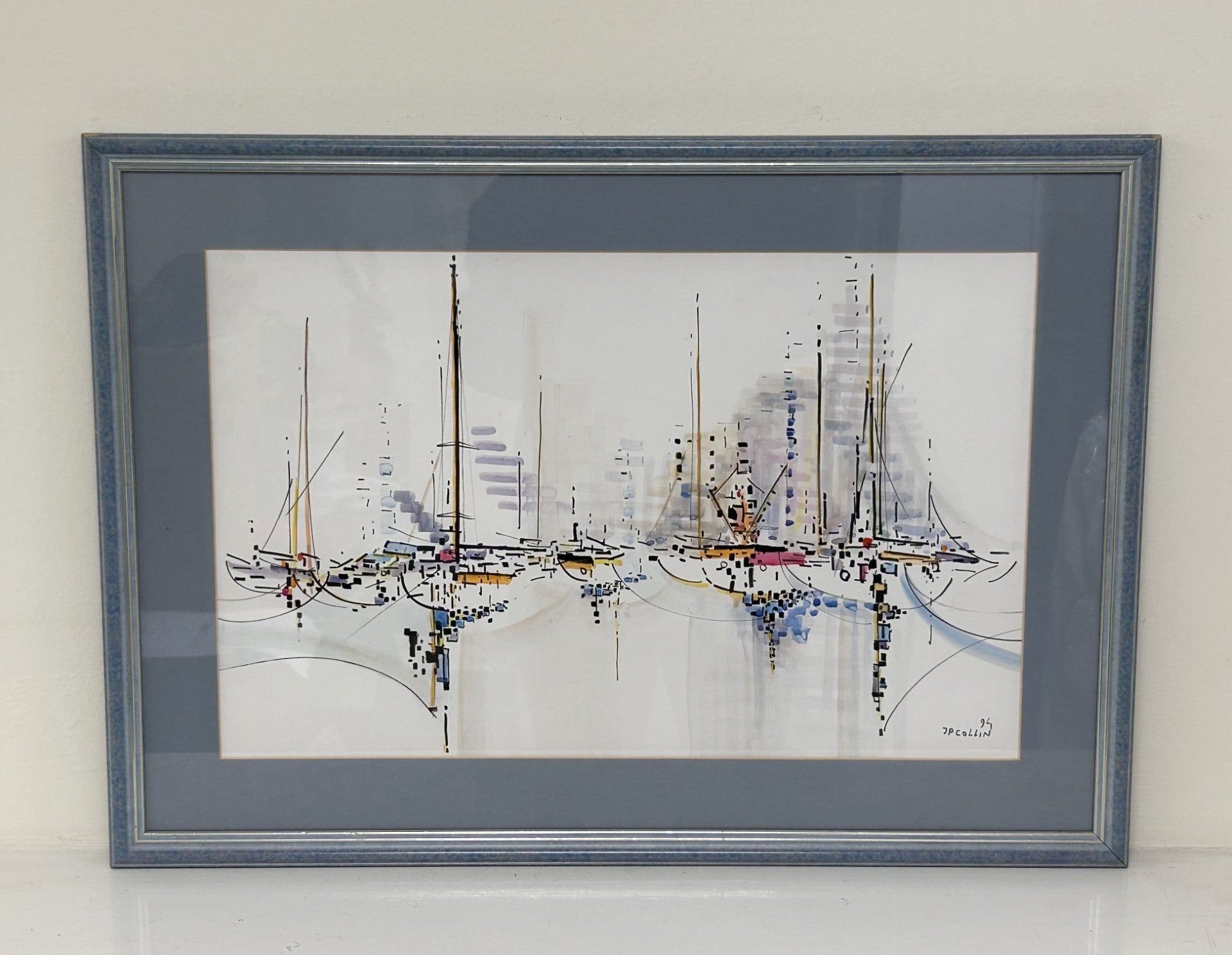 JP Collins' '95 Watercolour Painting captures the majesty of tall ships with delicate brushwork and atmospheric detail. A timeless addition to any room seeking character and nautical charm.