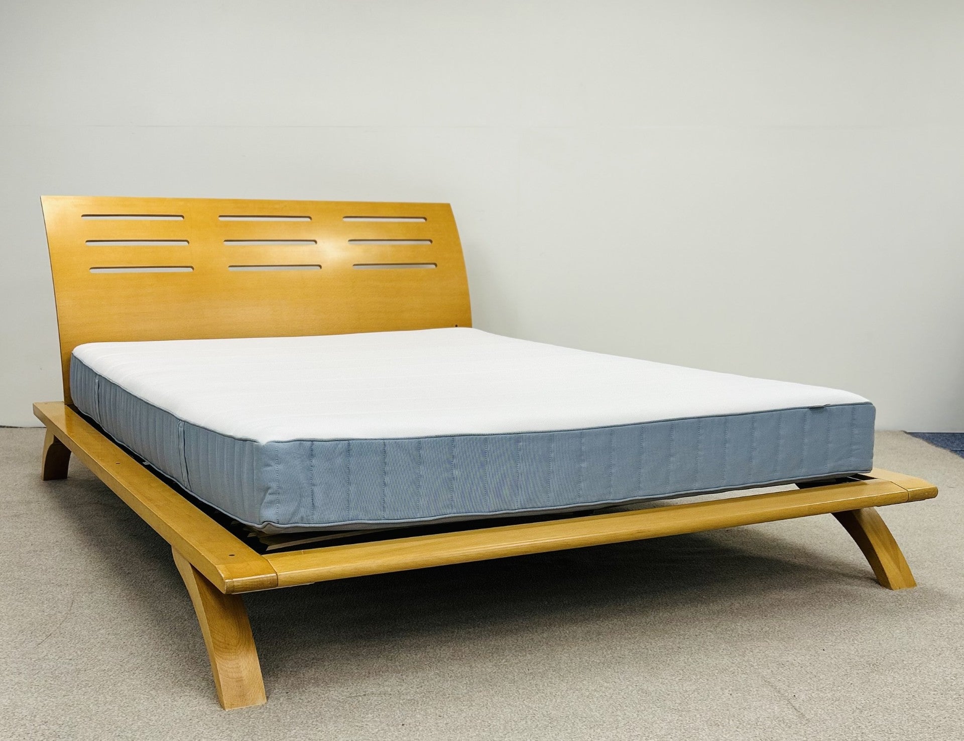 Wear and Tear: quite a bit of blemishing on the bed as shown in the photos. Scratches and chips are present all around, but, this will be reflected in the price. One slat has also been repaired using glue and black tape. Mattress has been sanitised in our mattress project.