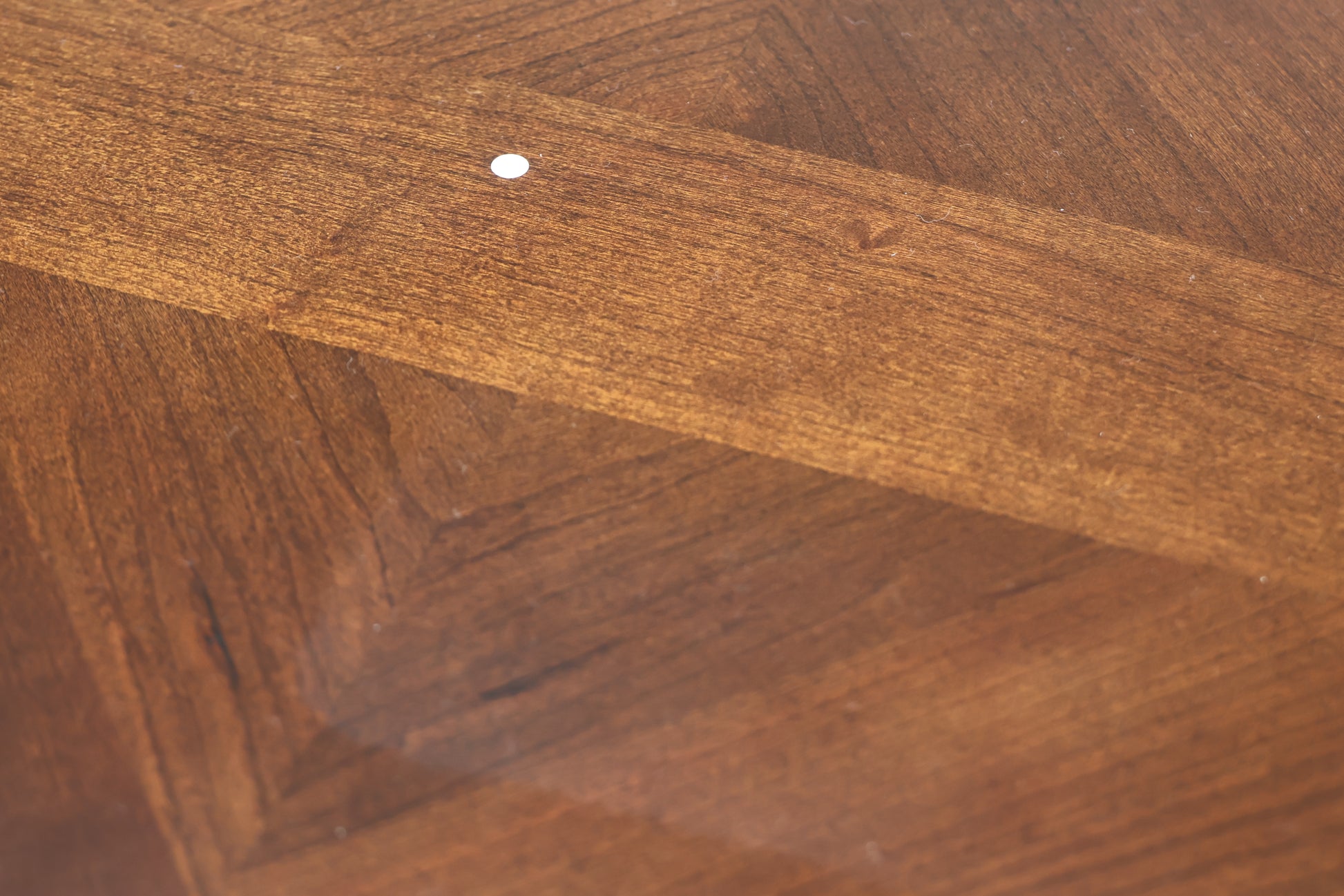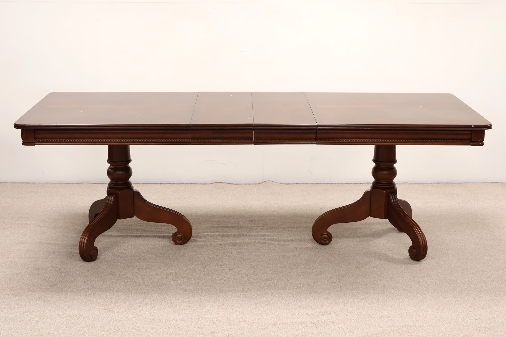 This substantial mahogany dining set brings timeless elegance to your home with its distinctive vintage character.