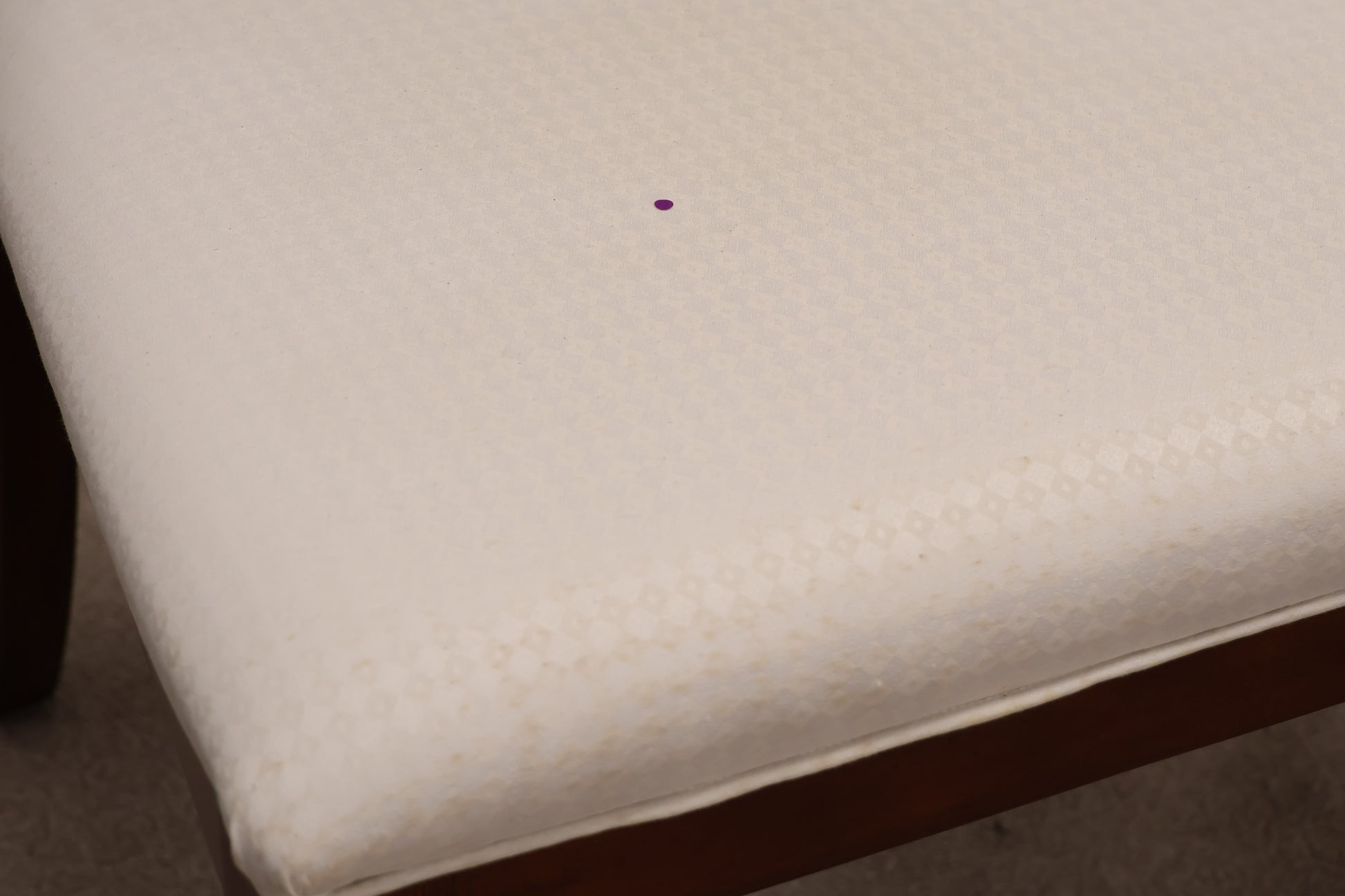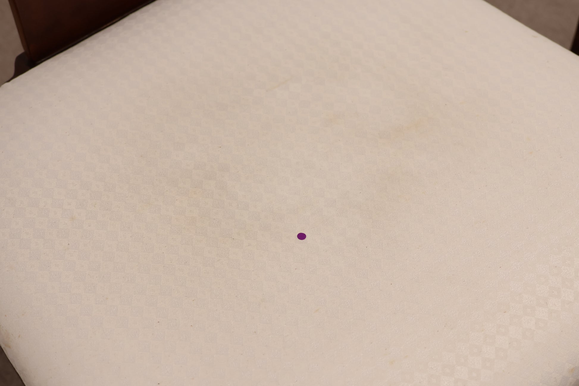 Wear and Tear: the fabric on the chairs has several blemishes with some marks on the table and chairs as shown in the photos. Please check carefully before making your purchase, all blemishing will be reflected in the price.