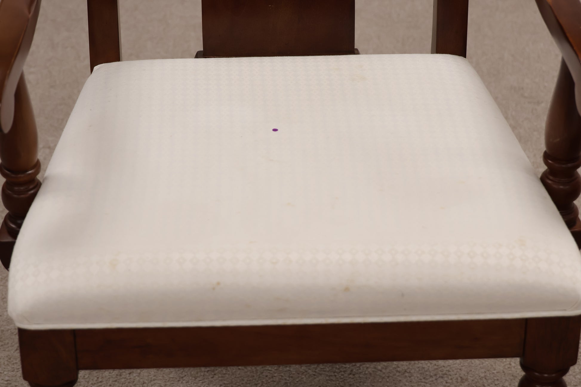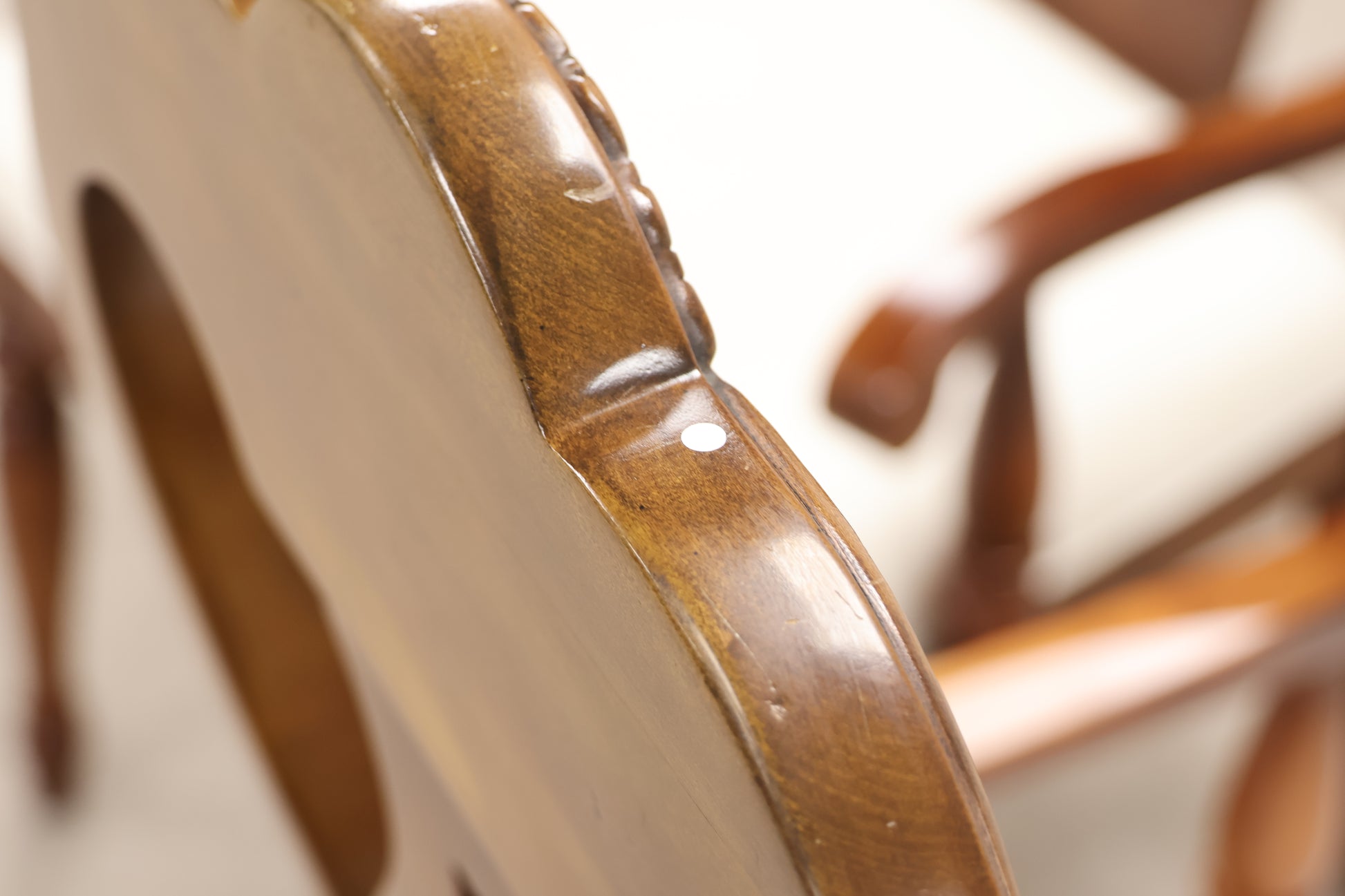 Hand-carved ornamental details showcase the natural beauty of the wood, creating a striking focal point in any dining room. The generous table size accommodates family gatherings and entertaining, whilst the matching chairs provide comfortable seating with authentic period styling.