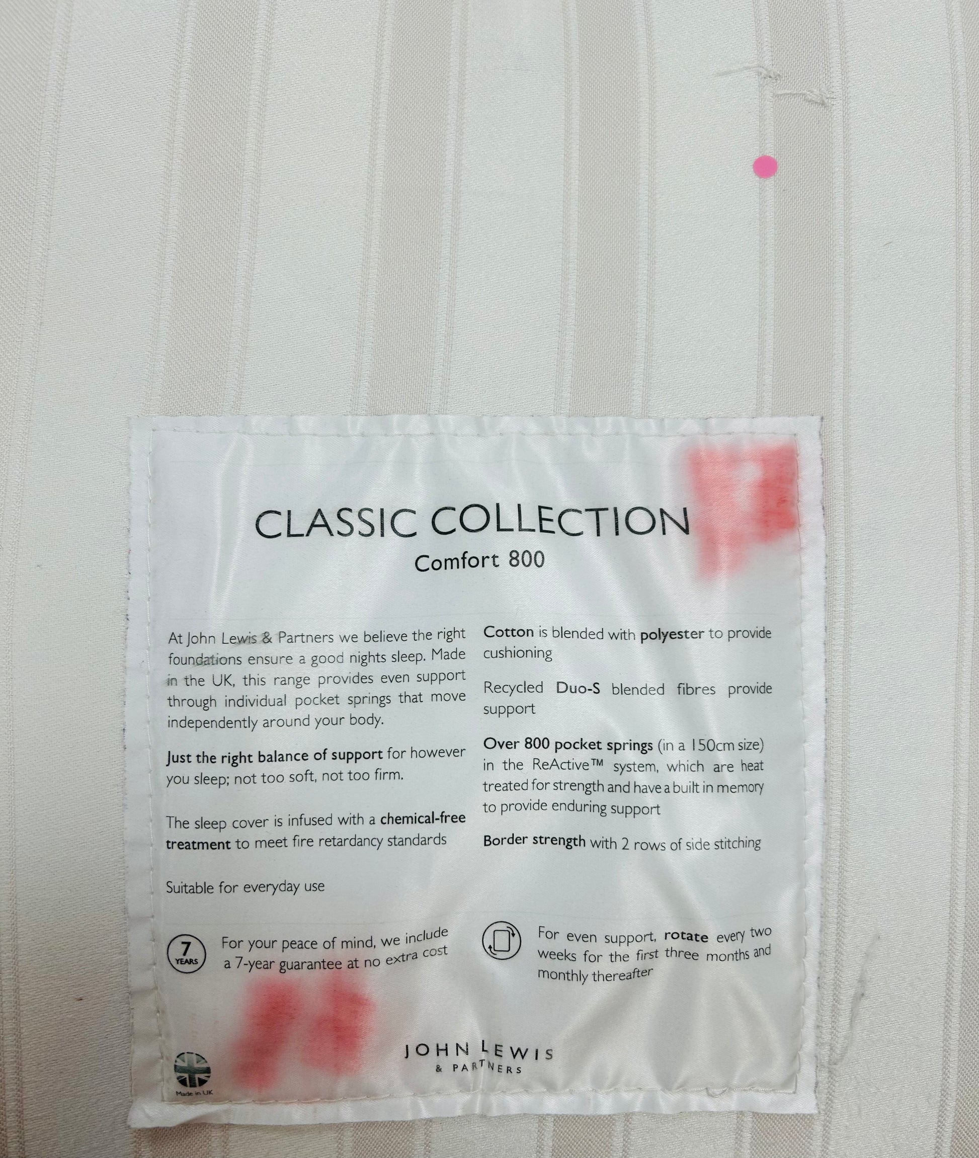 Mattress: John Lewis Classic Collection Comfort 800 ReActive Pocket Springs