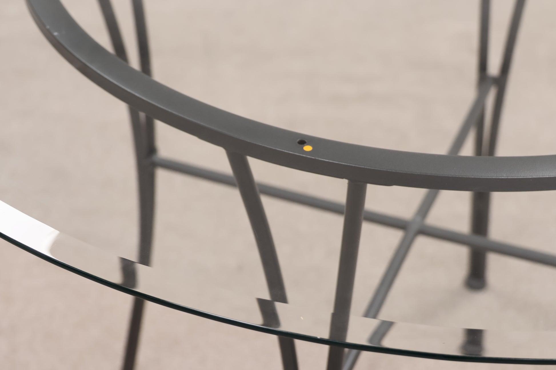Material: Metal, glass & fabric seat pads