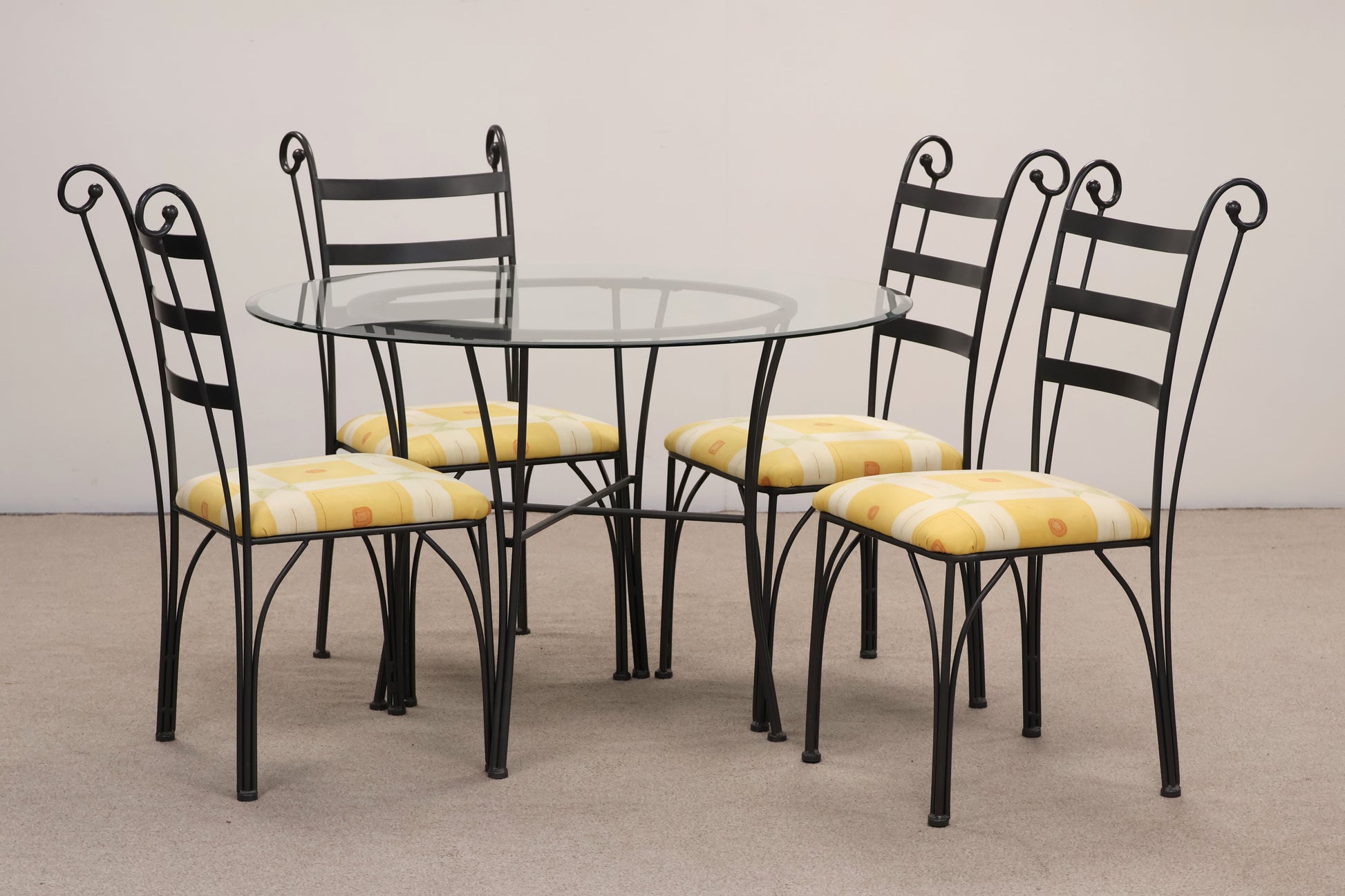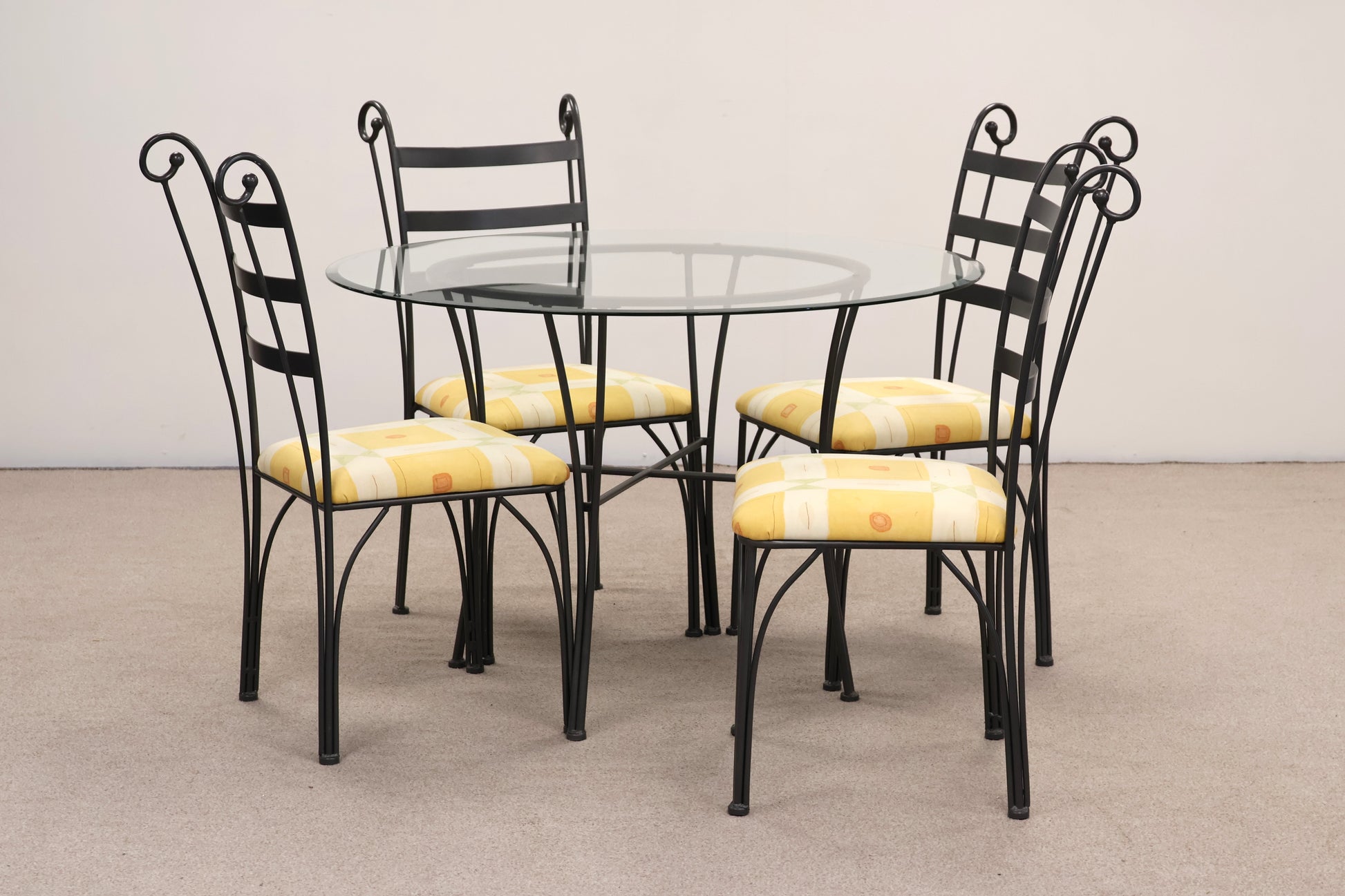 Metal Base Table with Glass Top and Four Matching Chairs