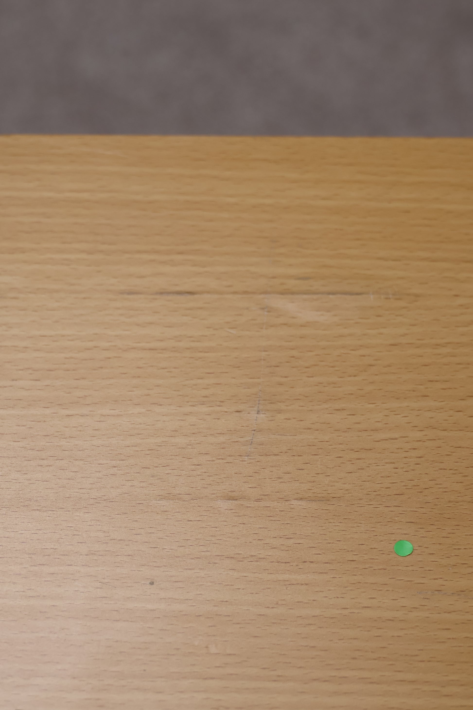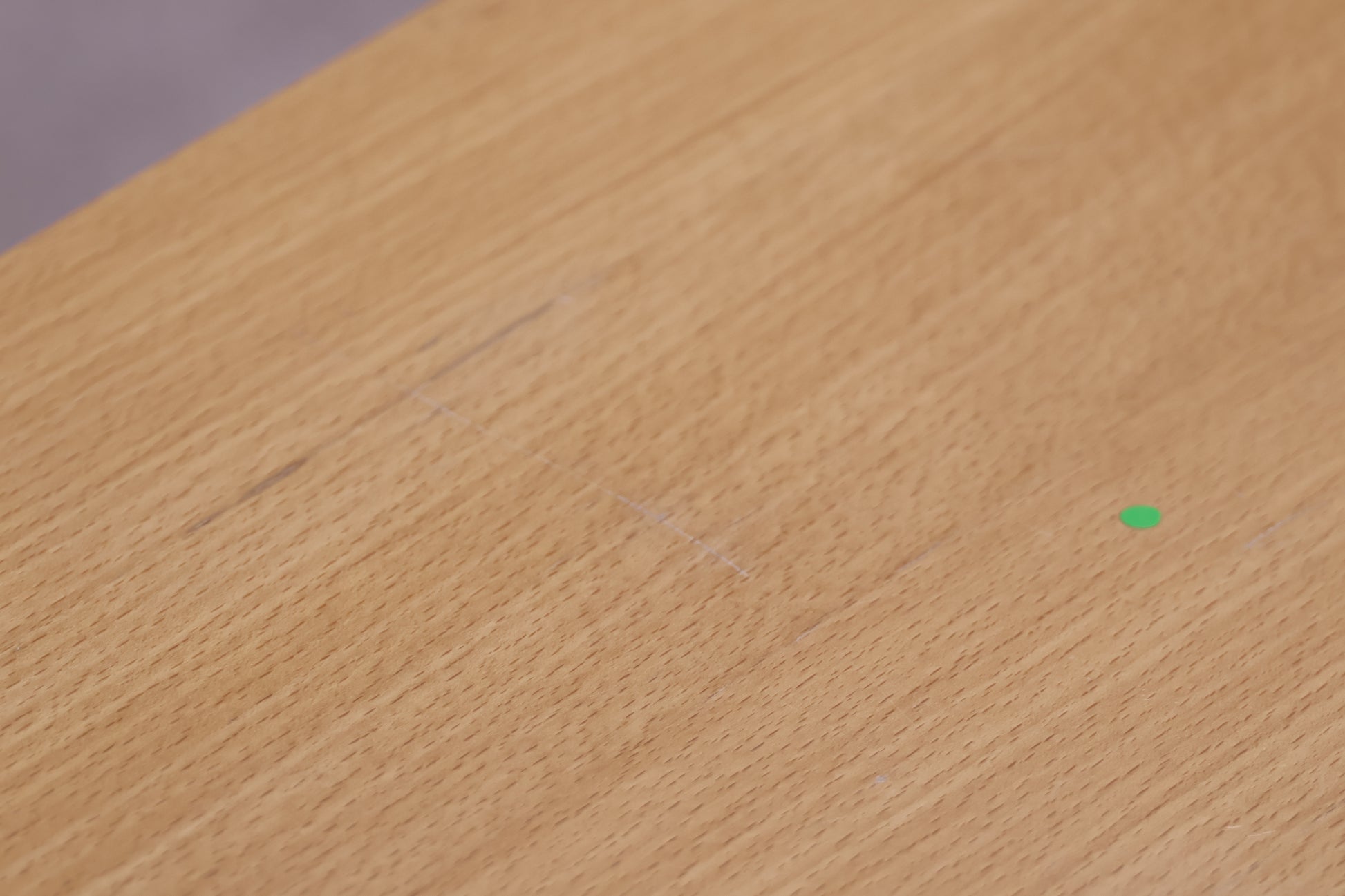 Wear and tear: Minor scratch marks and a stain mark visible on top of the drawer.