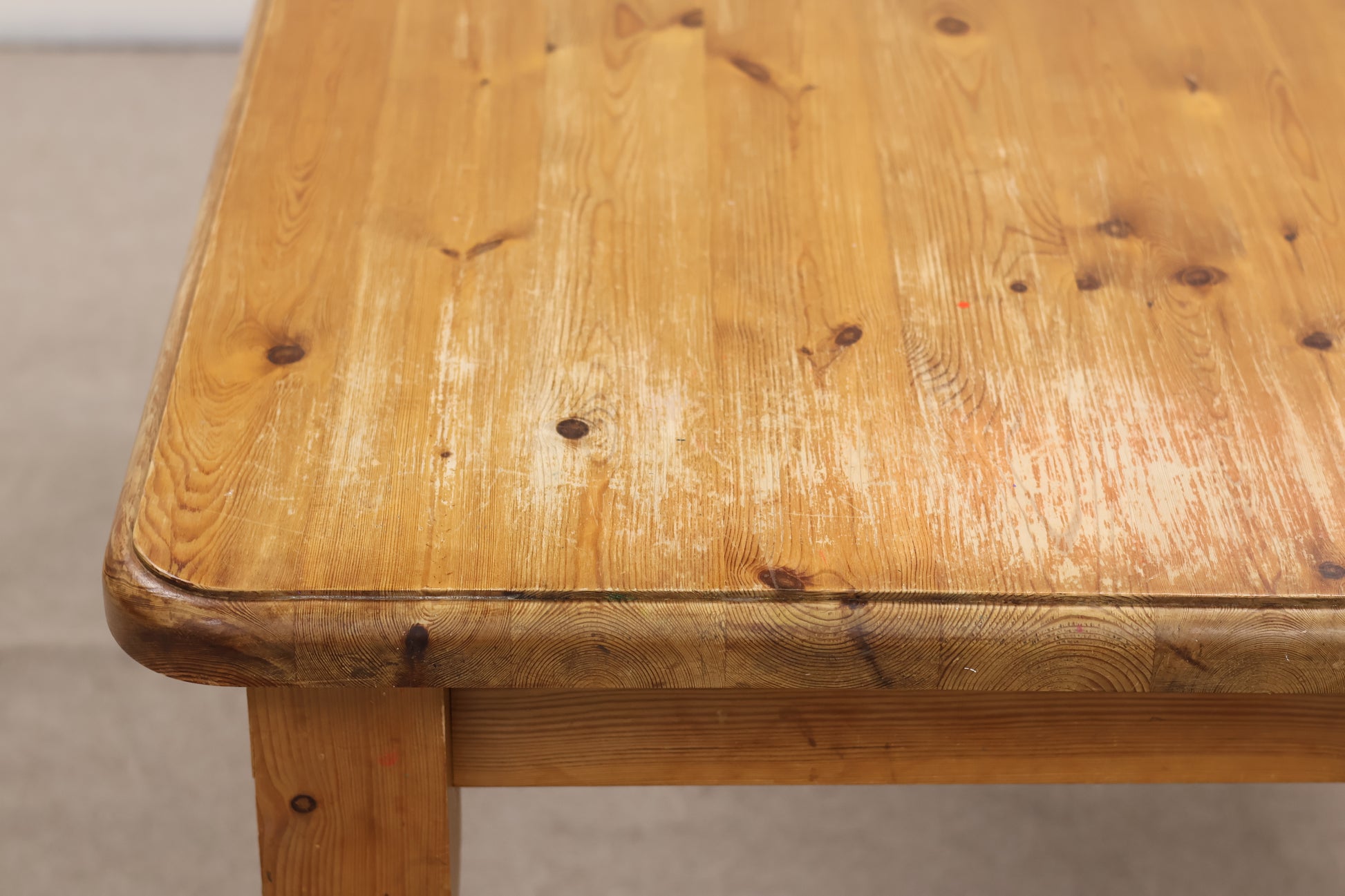 Solid pine table given a fresh lease of life by our UPCYCLEinc team. Carefully sanded and refinished with a smooth varnish coat, this piece features an elegant dark varnish trim that adds character and definition. A genuine upcycled find with renewed durability and charm, perfect for those who appreciate sustainable furniture with authentic character.