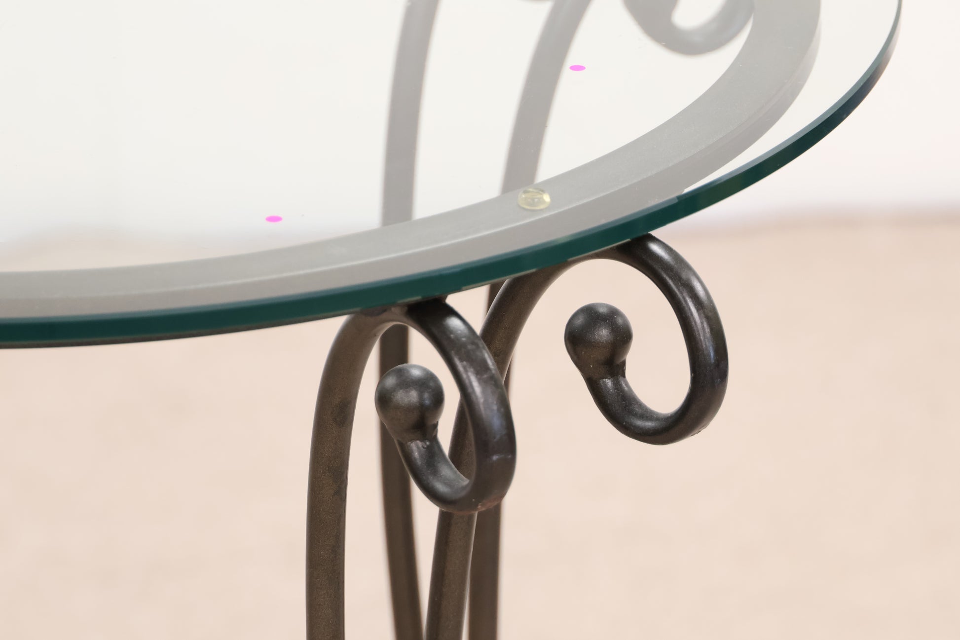 This elegant circular glass table combines height and ornate detailing for a refined look. Whether you're setting up a dedicated breakfast spot in your kitchen or creating a focal point in your hallway, this table could serve many rooms.