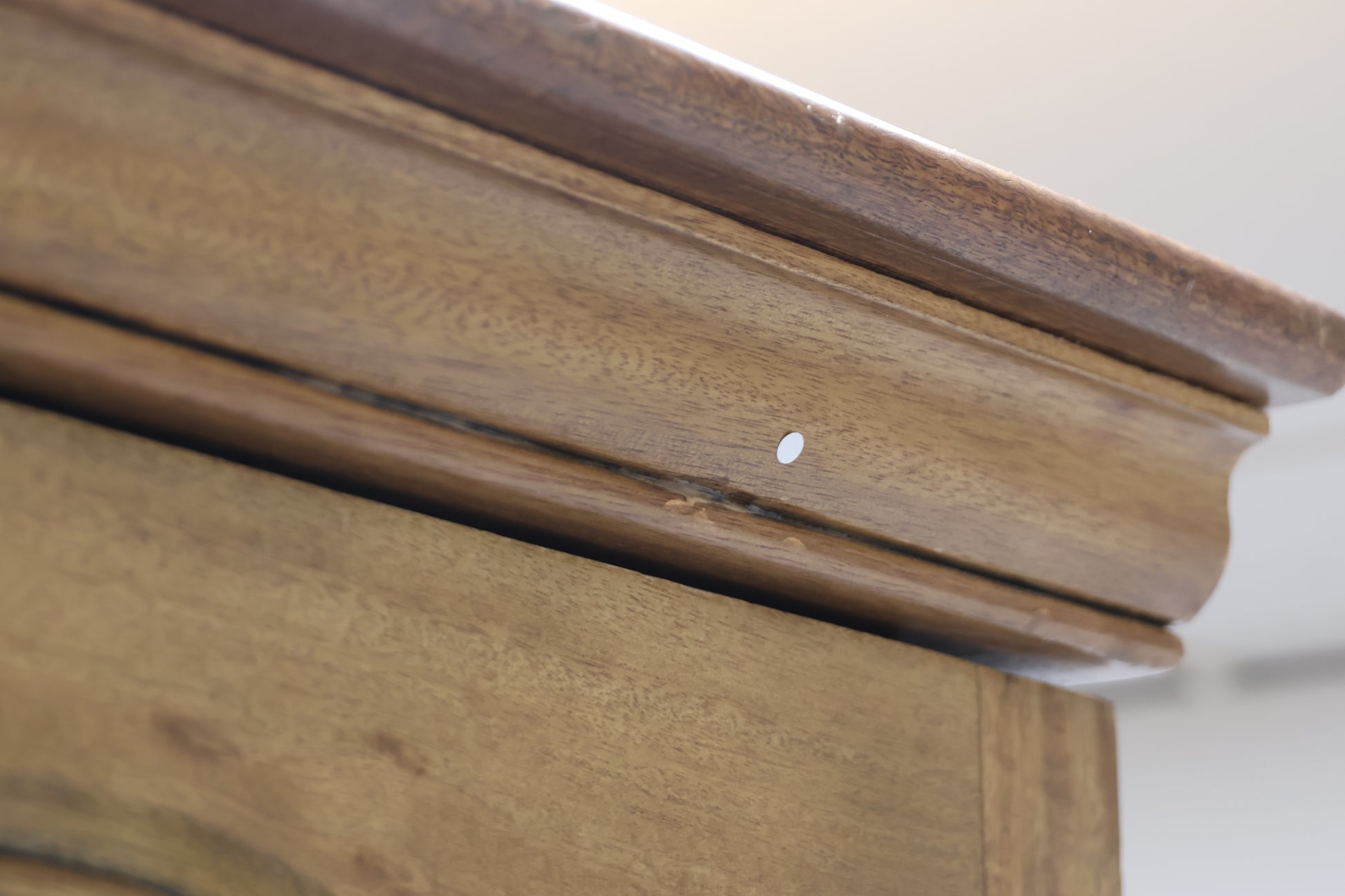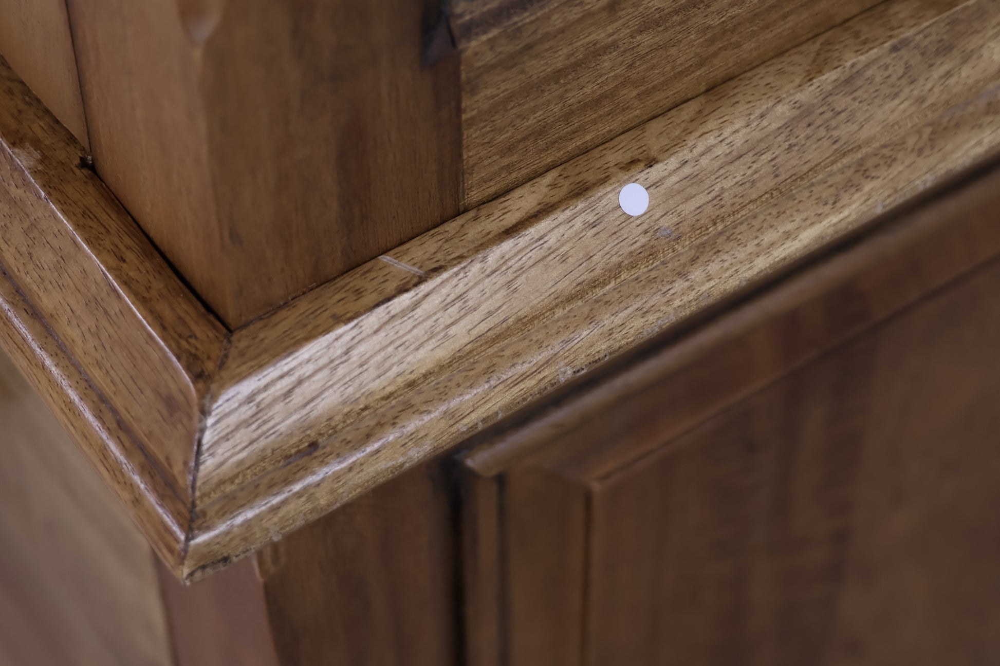 Wear and Tear: In excellent preloved condition, minor blemishes in the wood, please look out for out honesty dots in the photos. Missing shelf on right hand wardrobe, removed to hang longer garments, please see all our photos that represent this.