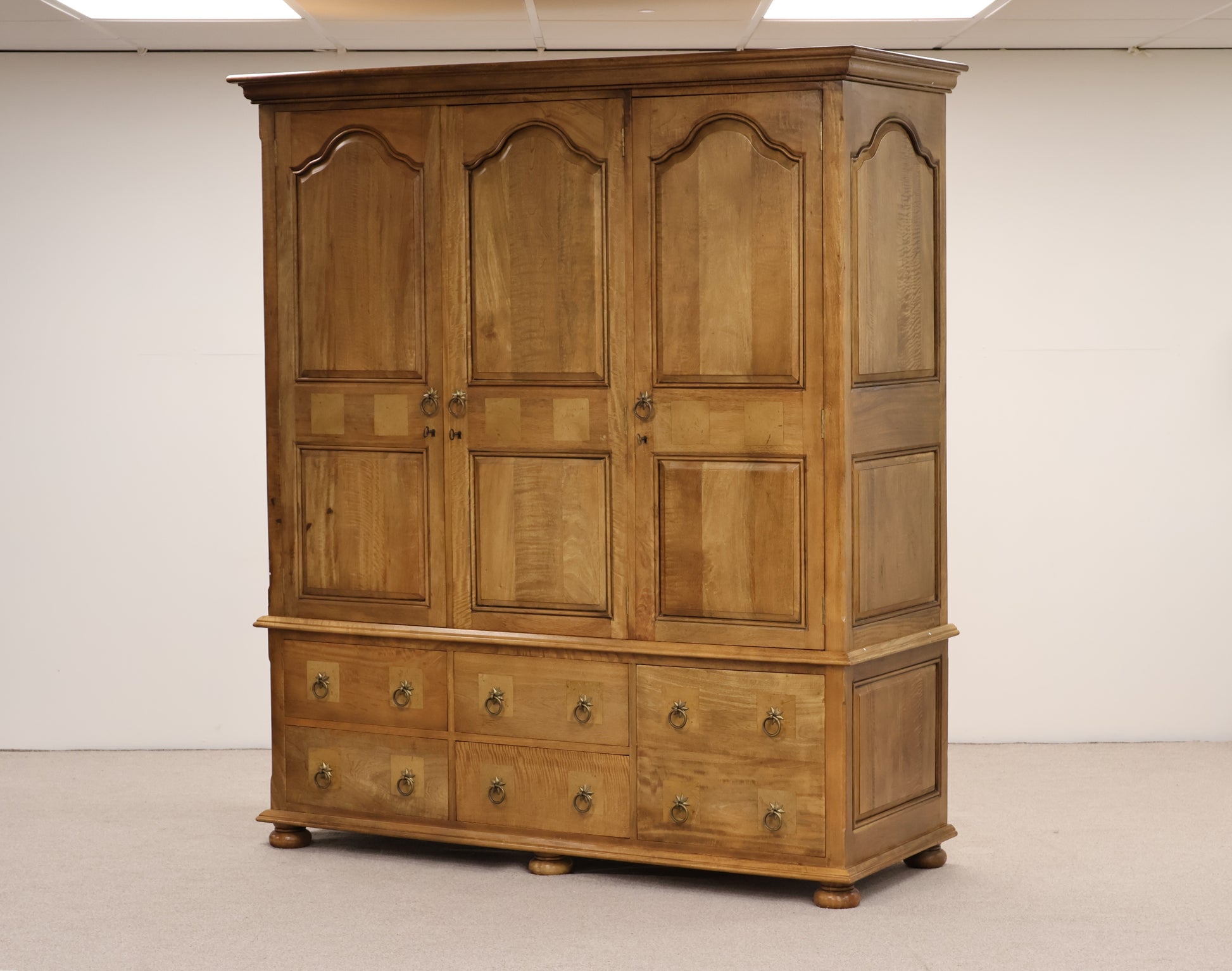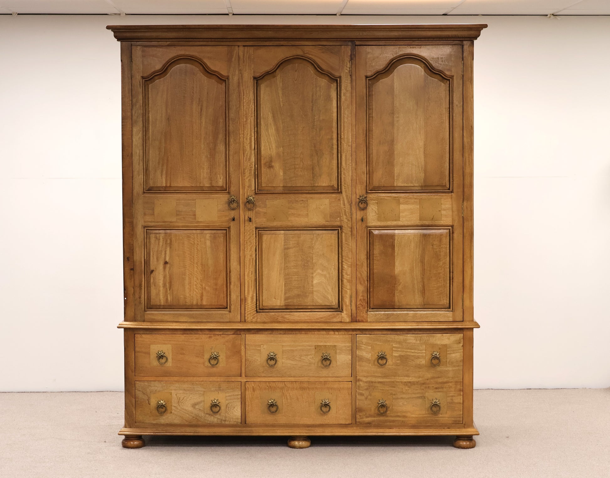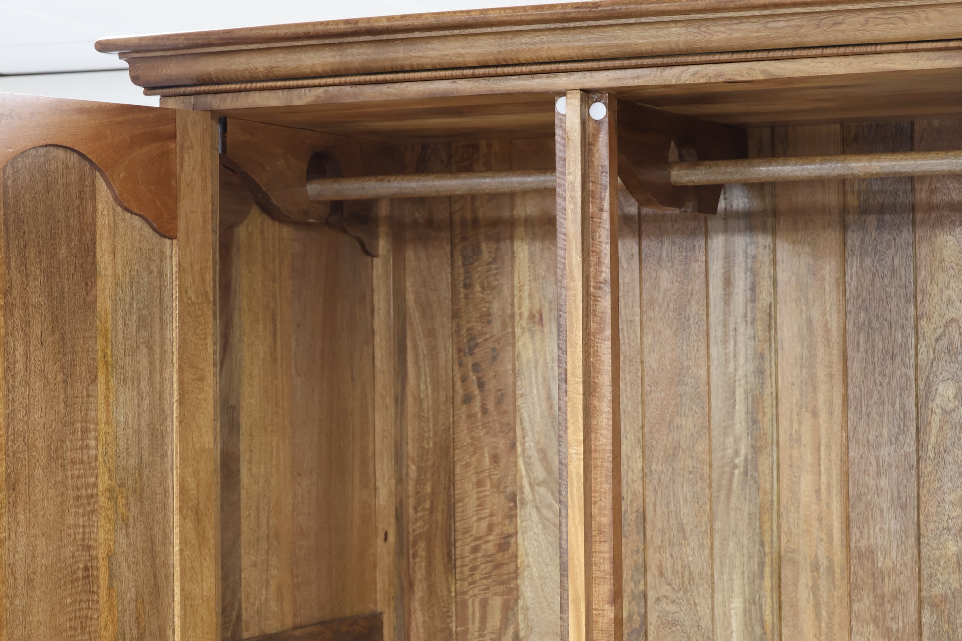 This wood triple wardrobe combines generous storage with timeless design. Three full width compartments provide ample hanging space for coats, dresses, and everyday wear, whilst four drawers below offer convenient storage for folded items, accessories, or bedding. Crafted from quality wood, it's built to last and complements both traditional and contemporary interiors.