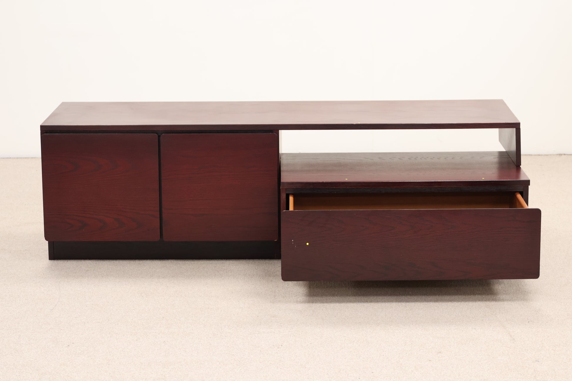 This TV unit offers genuine storage solutions for your living space. The deep wood finish brings warmth to any room, whilst multiple compartments keep your media equipment, remotes, and accessories organised. Built with solid construction to safely support your television, it's a straightforward piece that prioritises functionality without unnecessary frills.