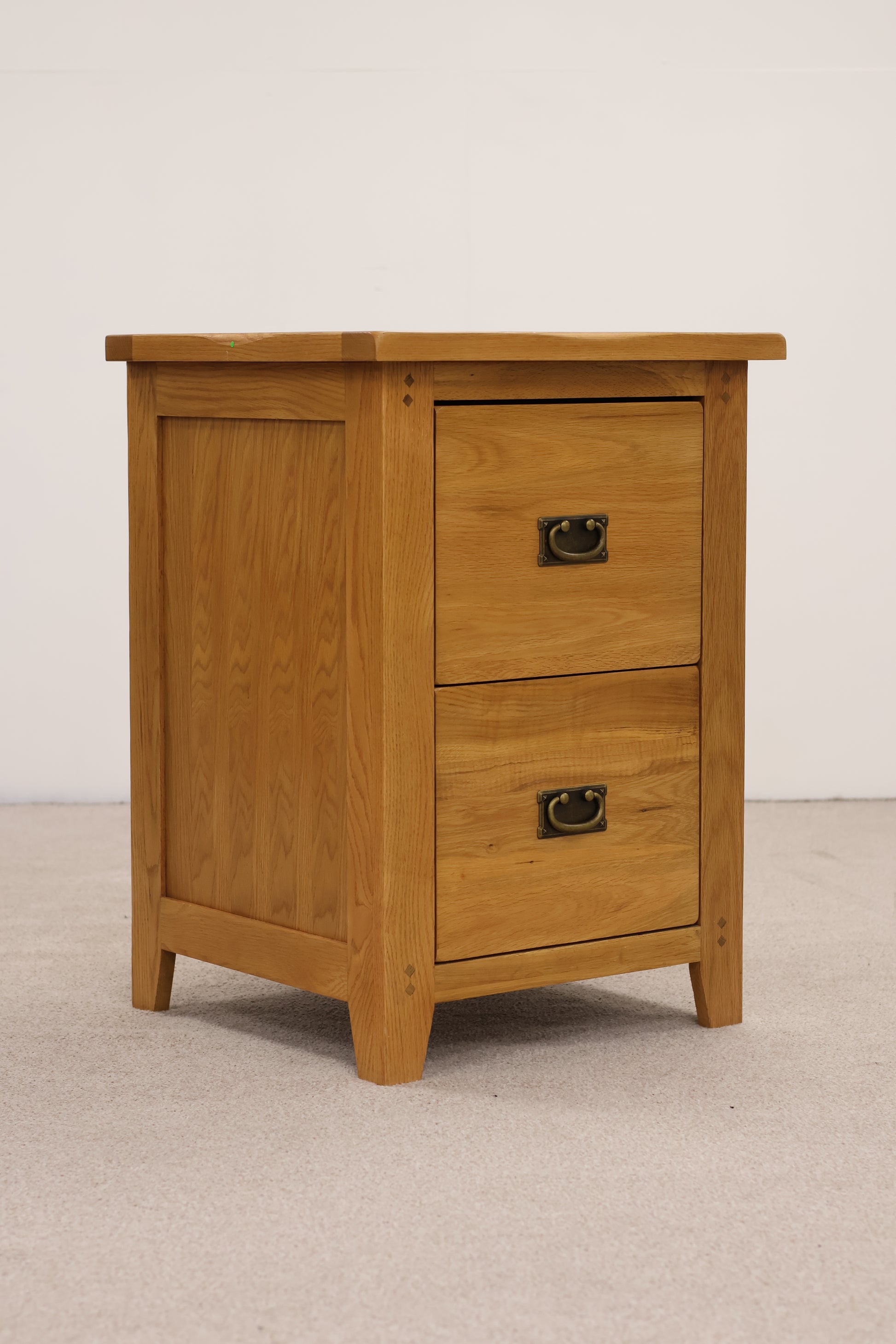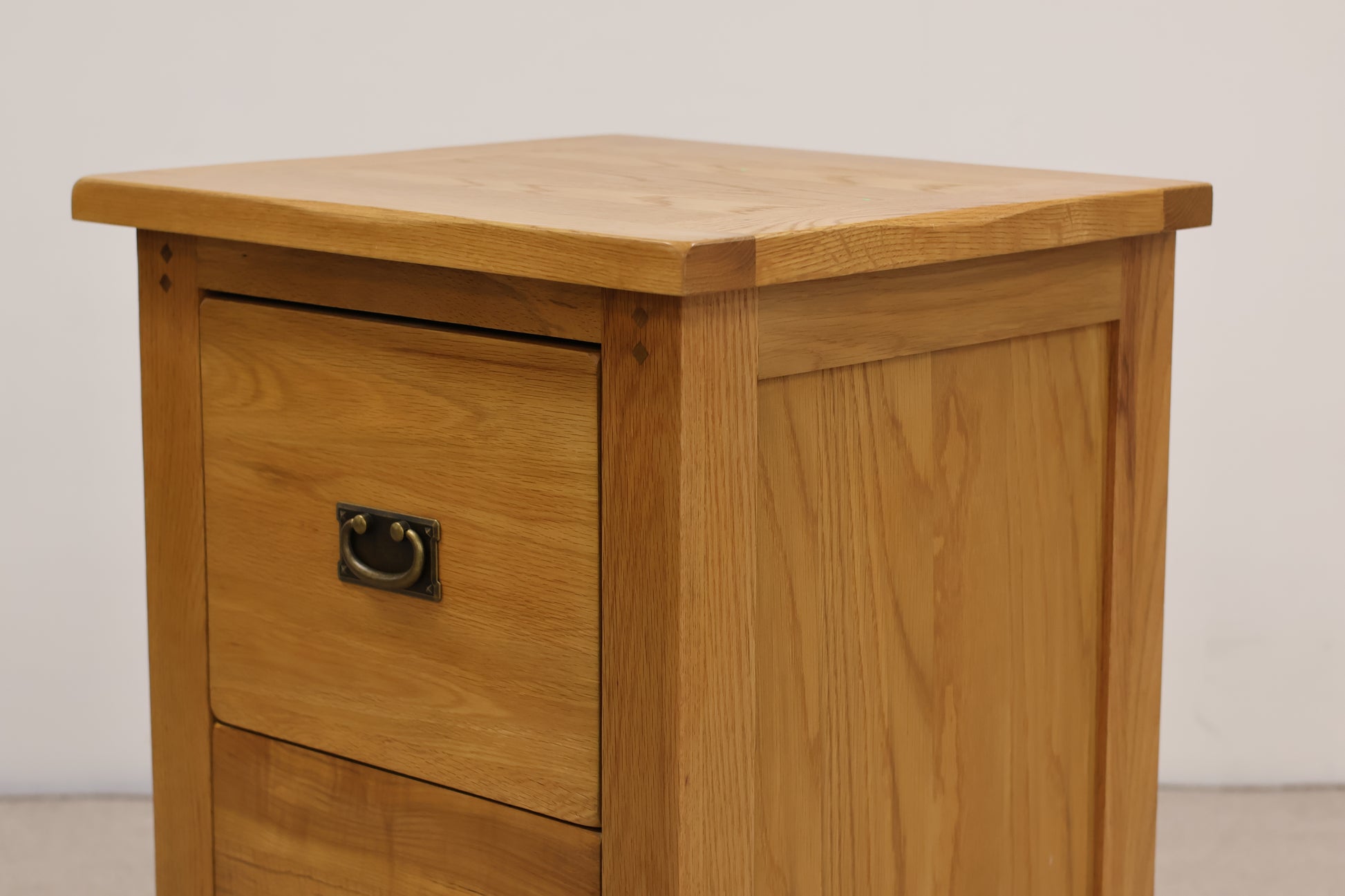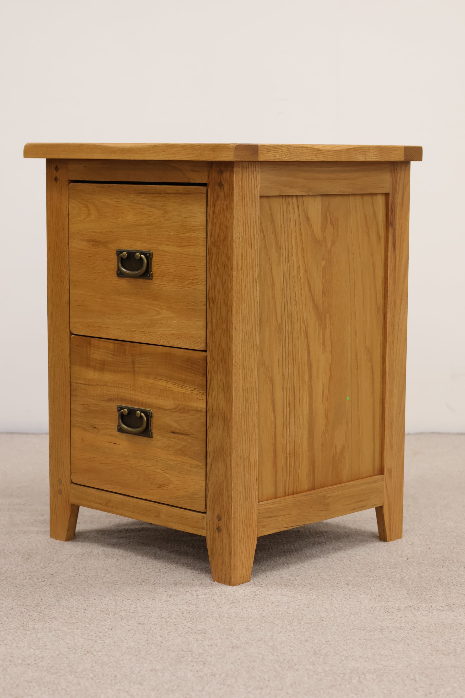 This solid oak office cabinet adds a natural warmth to your workspace while offering practical storage with two deep drawers. Perfect for organising files and keeping your office tidy, it combines durability with a simple, functional design.