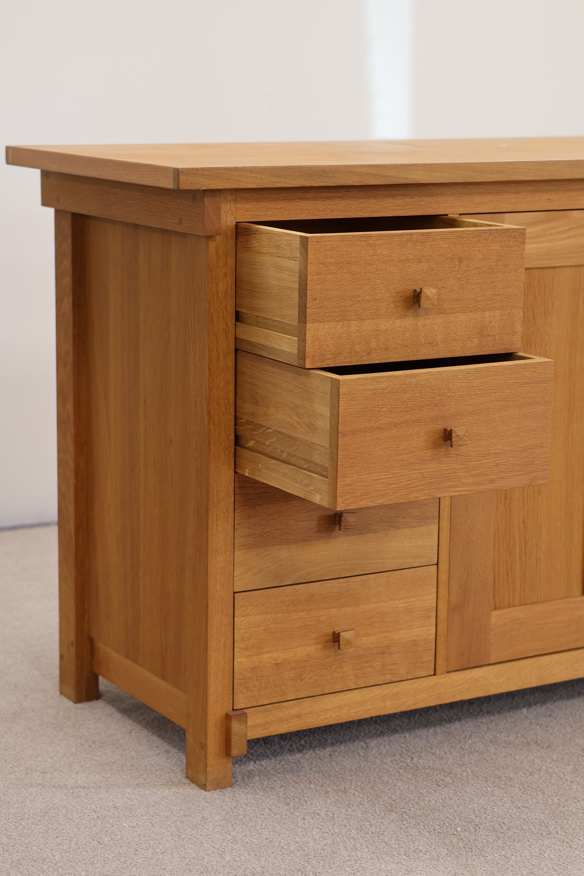 This solid oak sideboard offers sturdy storage with a contemporary design.